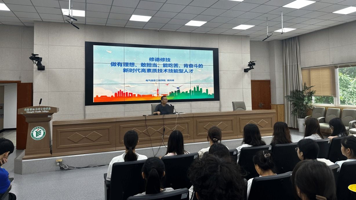 姚玲峰以《修德修技,做有理想、敢担当、能吃苦、肯奋斗的新时代高素质技术技能型人才》为题,为2024级新生讲授第一堂思政课,号召同学们做有理想、有担当的青年。“青春就应吃苦,青春就应奋斗。选择了‘佛系’,就无法攀登事业的高峰;选择了‘躺平’,就注定错过极致的风景。”他希望同学们将大目标分解为小目标,一步一个脚印地朝前走。“只有脚踏实地,才能生逢盛世而不负盛世,生逢其时而奋斗其时!”