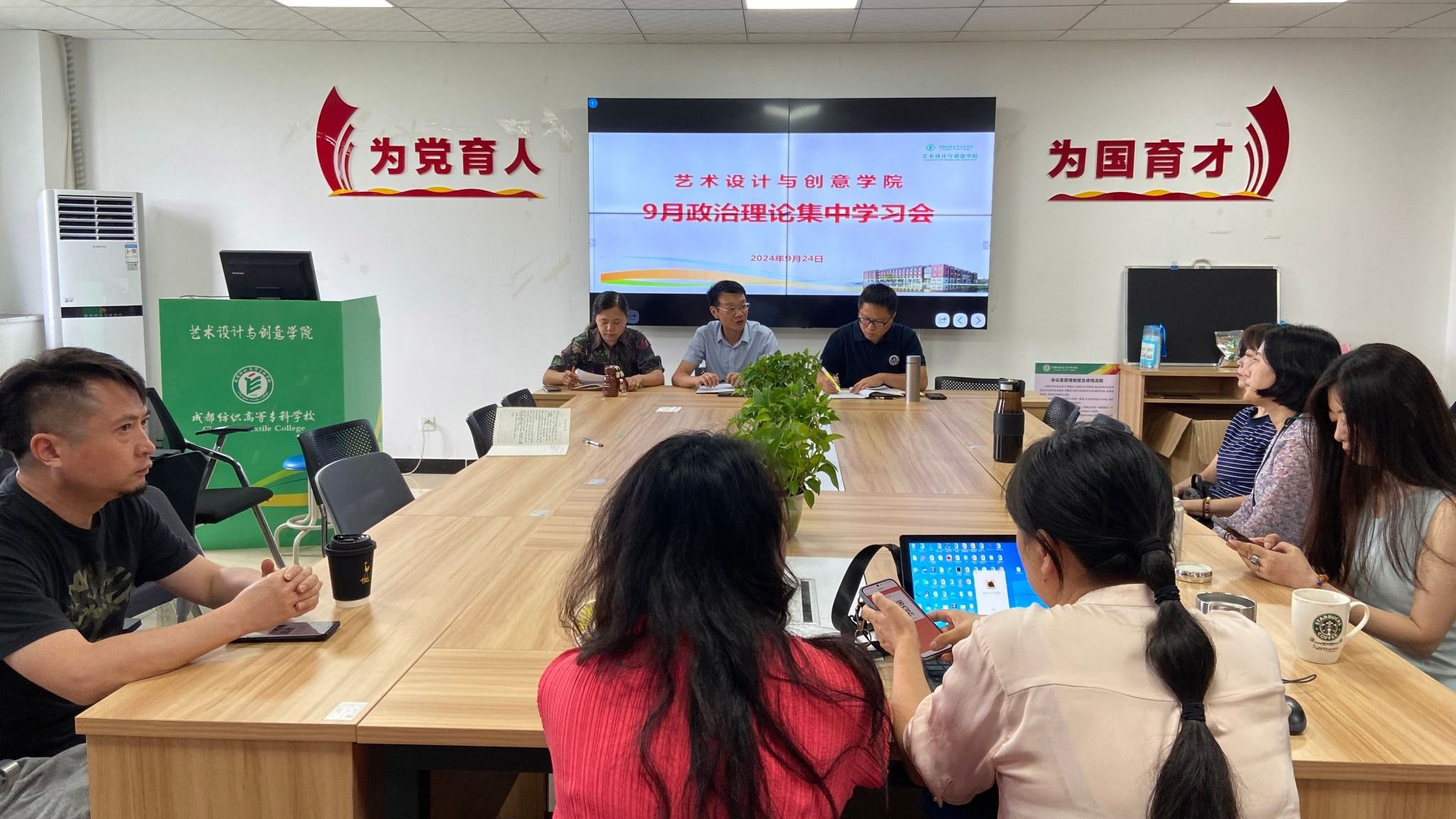 9月24日下午,创艺学院在融创楼B205会议室召开9月政治理论集中学习会,传达学习党的二十届三中全会精神和全国教育大会精神。党总支书记王坤主持会议并就贯彻落实提出要求,院长刘畅安排布置近期重点工作。
