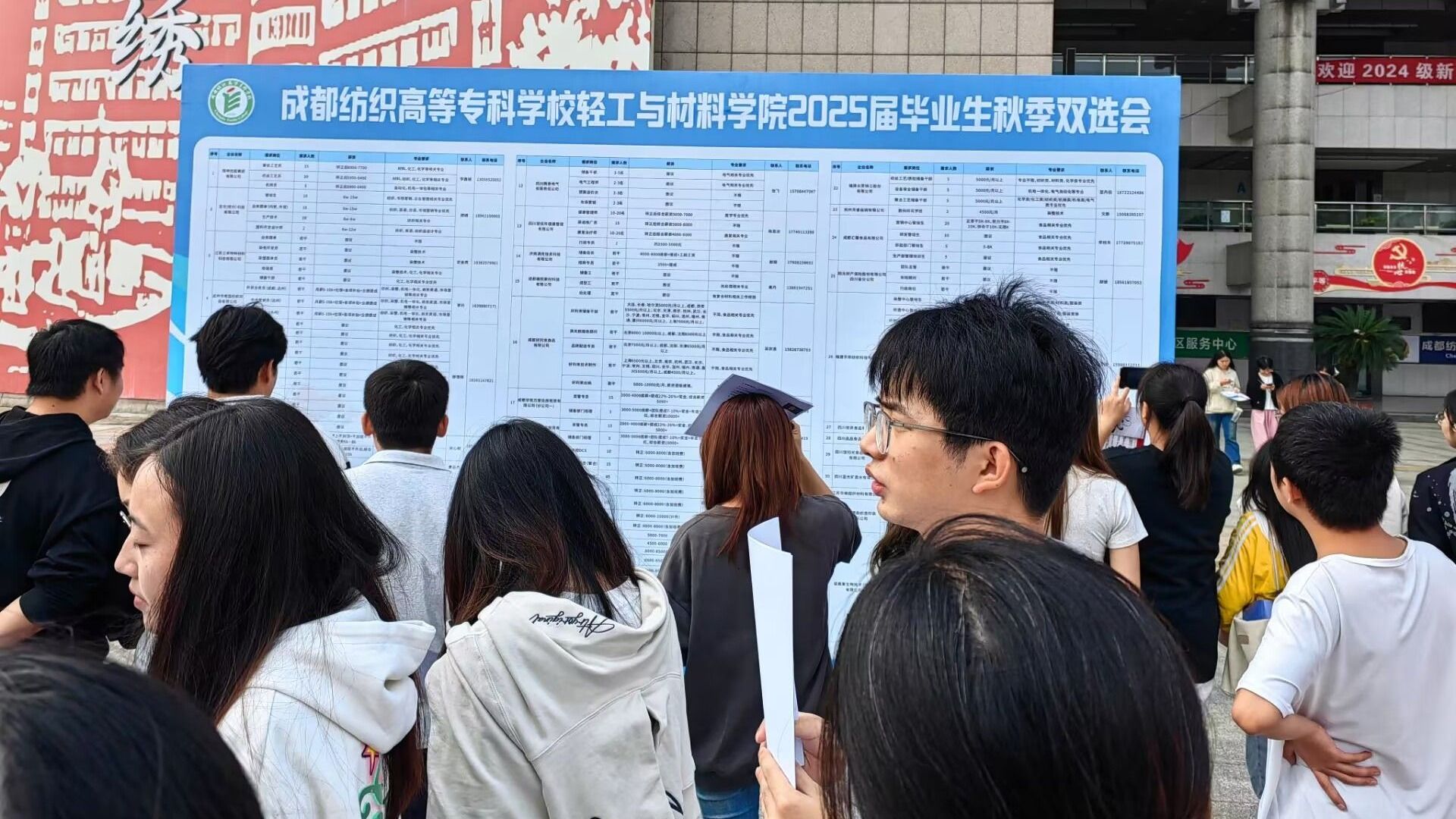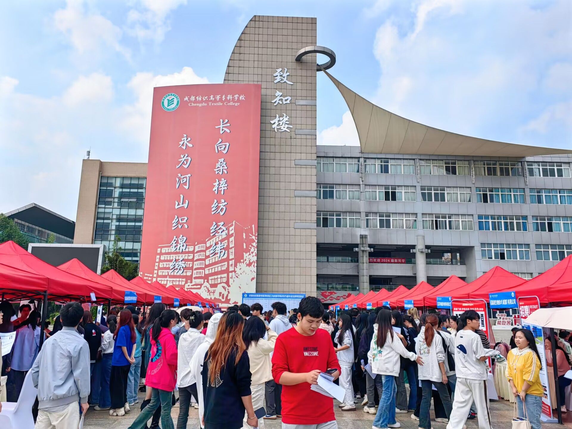 10月15日,轻工与材料学院2025届毕业生秋季校园双选会在致知楼广场举行。恒申控股集团有限公司、福建永荣锦江股份有限公司、四川意龙科纺集团股份有限公司、福建宇邦纺织科技有限公司、浙江精工集成科技股份有限公司、成都好利来食品有限公司等33家用人单位到校招贤纳士,提供岗位2500余个。轻工与材料学院2025届毕业生以及兄弟学院部分毕业生参加了双选会。