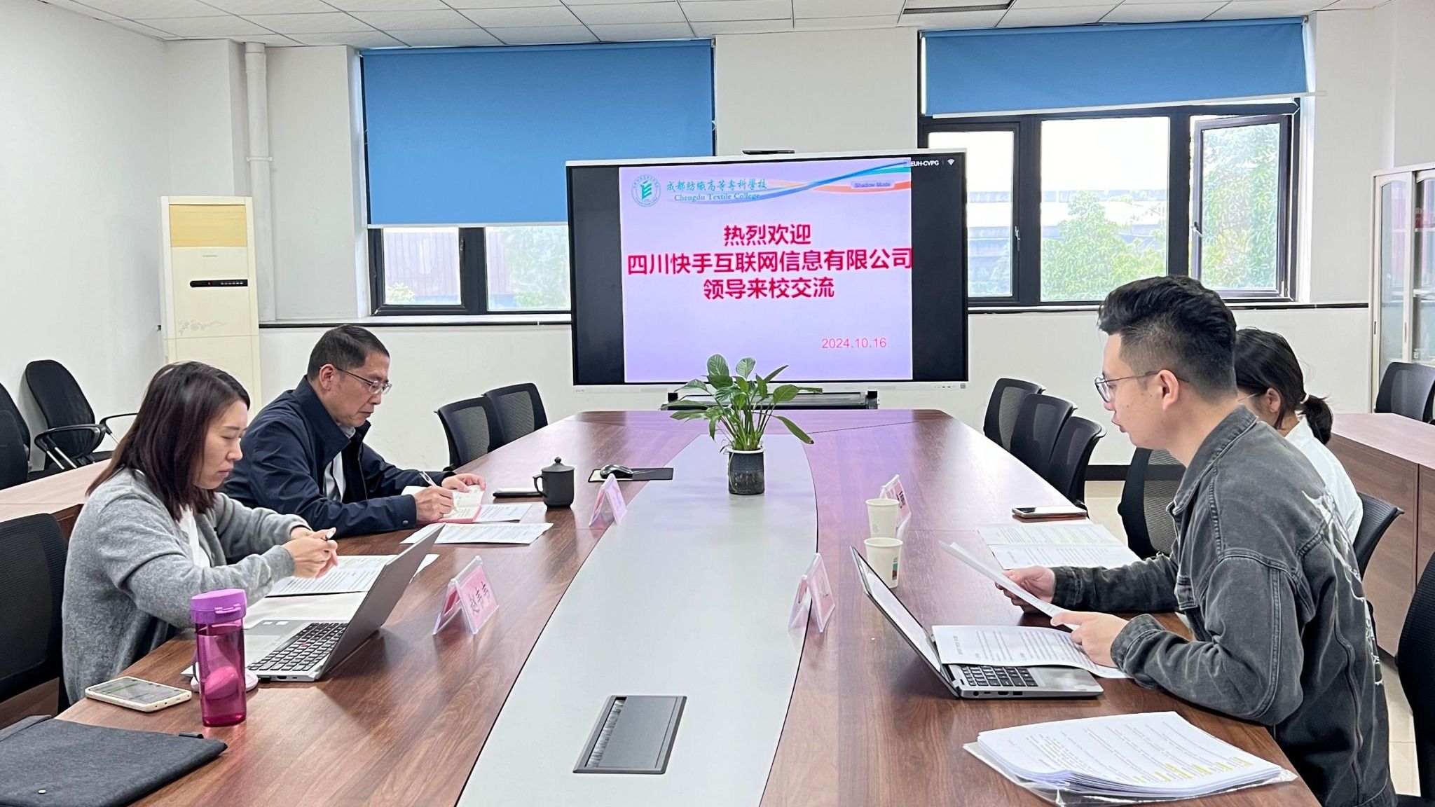 10月16日,北京快手科技有限公司校企合作负责人邓晚丽、四川快手互联网信息有限公司校企经理刘姣来pg电子数管学院交流座谈,校企双方就校企合作内容与形式进行探讨和交流。学院党总支书记王霖、电子商务专业负责人赵韦韦参加接待和交流。
