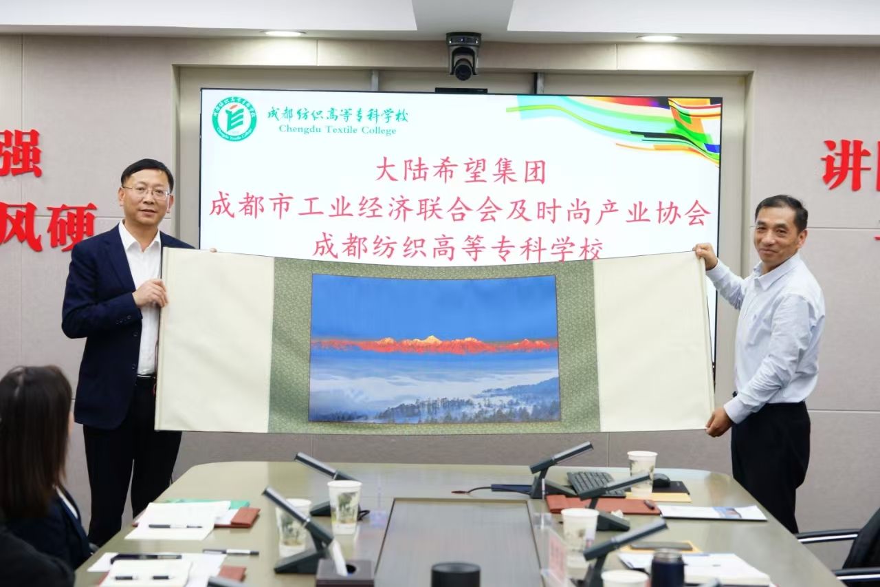 会后,孙锐代表学校向企业赠送了代表着希望、寓意着幸运的“贡嘎金山”织锦作品,希望校企双方通过强强联合,为地方经济发展注入新的活力,为社会培养出更多优秀的技术技能人才。