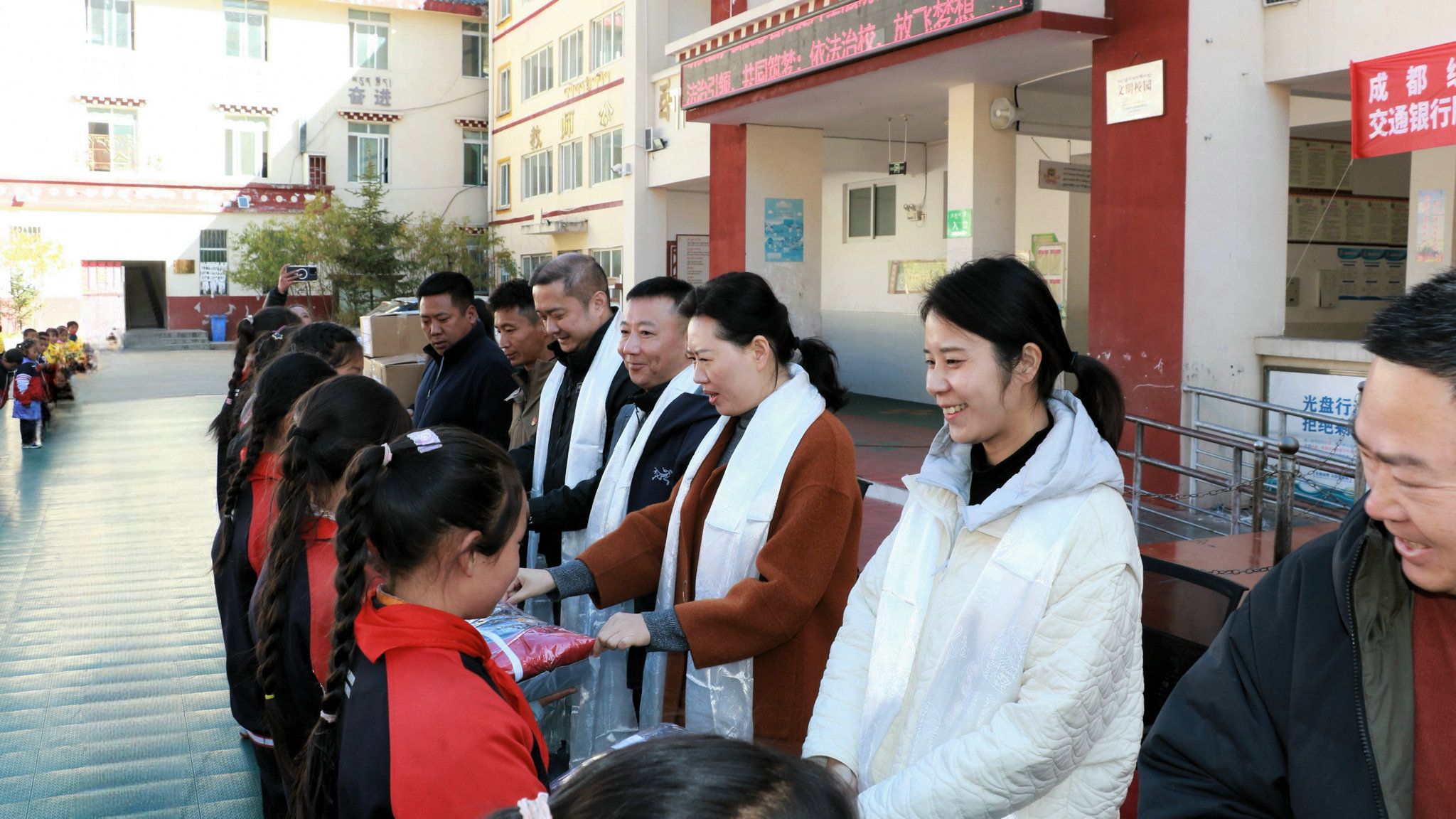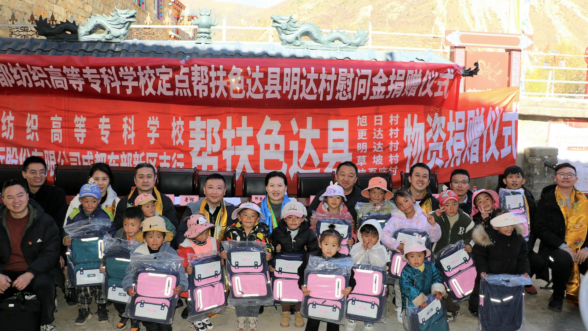 10月22日至24日,学校党委常委、副校长刘莉与交通银行股份有限公司成都东部新区支行行长韩阳一行8人赴甘孜藏族自治州色达县开展定点帮扶工作,学校向杨各乡小学捐赠校服380套、向明达村捐赠帮扶资金1.2万元,交行成都东部新区支行向pg电子定点帮扶的6个村学生和幼儿捐赠爱心书包380个。中共色达县委副书记鲁程全程陪同参与上述活动。