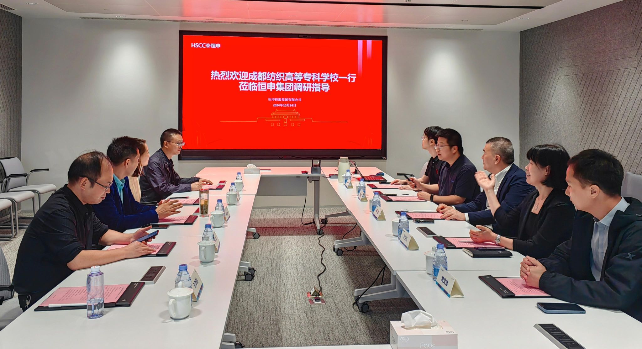 走访恒申控股集团有限公司后,蒲冰远一行与公司副总裁梅震等就深化产教融合、校企合作事宜展开座谈,畅通人才供需对接路径,共同探索培养符合社会需求的高素质人才的新模式。