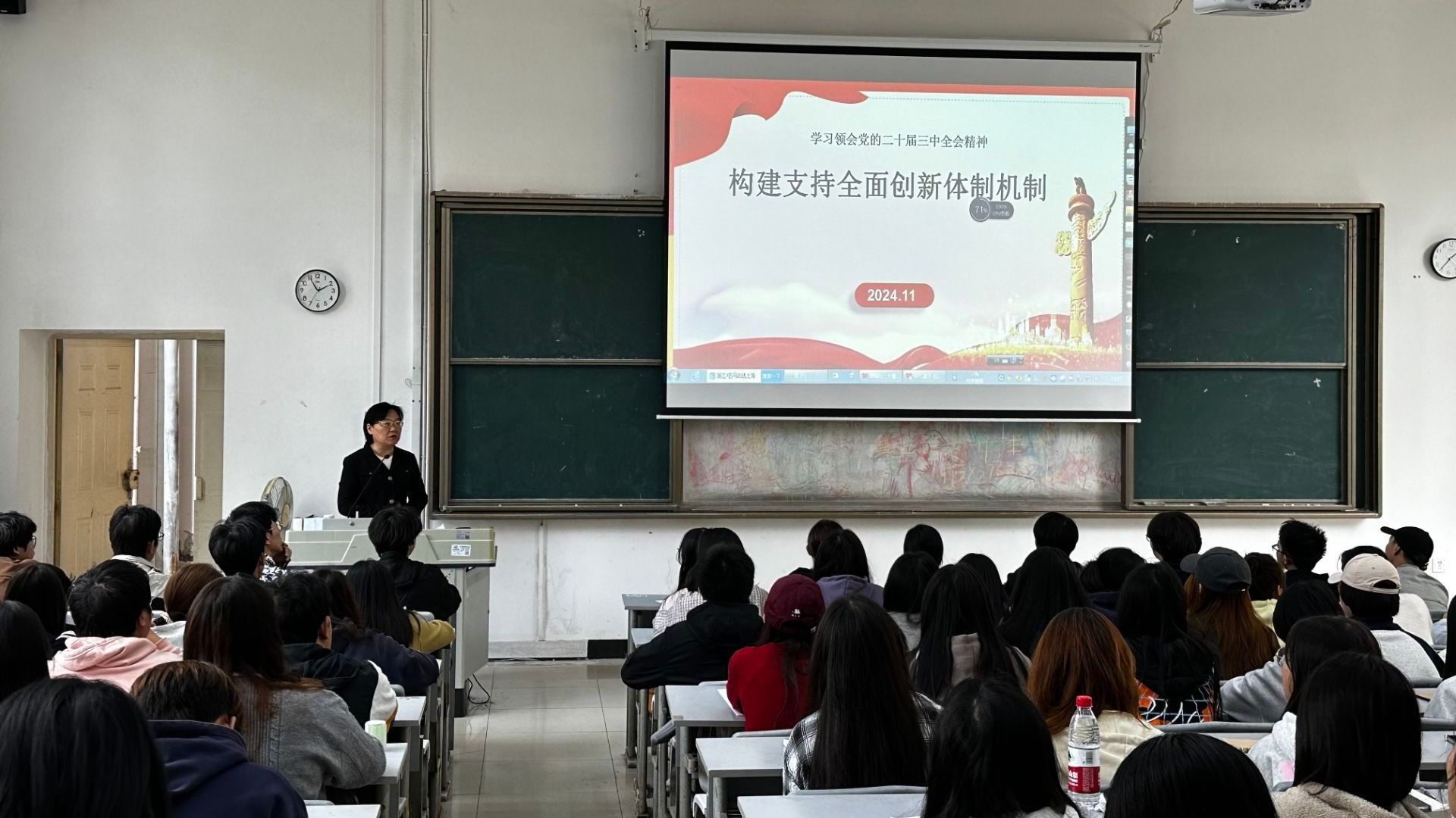 11月5日,电信学院在致知楼C106开展第六十一期共青团干部培训第一课,邀请马克思主义学院漆晓玲教授作学习党的二十届三中全会精神专题培训。学院团总支干部、团总支学生会全体干事,大一各班团支书、组织委员、宣传委员共计140余人参加培训。