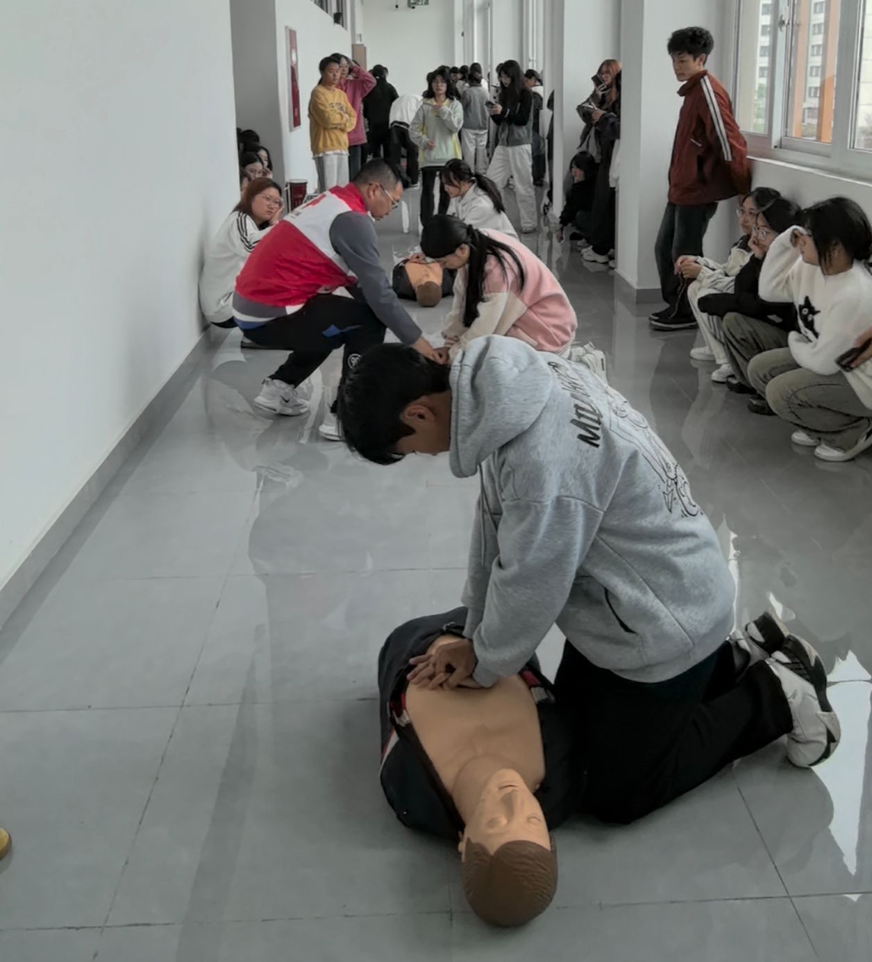 第三天,在绳编手工课程体验与汇报现场,指导团队邀请邛崃红十字会救护培训师资团队,为学生们带来一场生动的急救知识讲座。讲座中,专家详细讲解了急救的基本知识和操作技能,并现场演示了心肺复苏等常见急救方法。学生们认真聆听,积极参与互动体验,在红十字会和校内老师的引导下,体验心肺复苏急救技能实操,进一步理解体悟了研学服务岗位的多样化知识技能与身体素质要求。