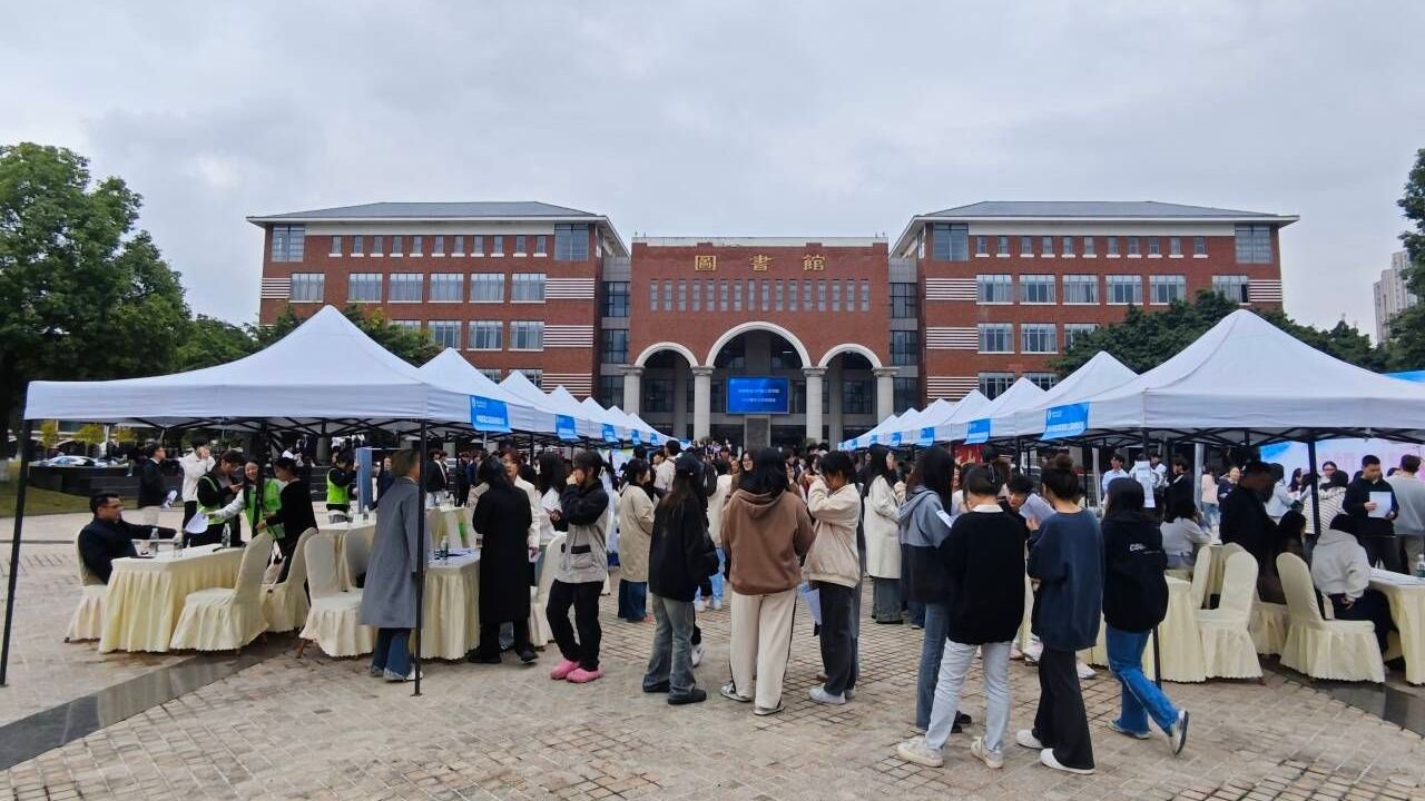 11月12日下午,建环学院在北苑图书馆广场举办2025届毕业生秋季双选会。建环学院院长秦朝昭、党总支副书记(主持工作)鲜金宏、毕业班专任教师及辅导员到场,与企业单位进行沟通交流,并为现场学生提出的就业相关问题答疑解惑。