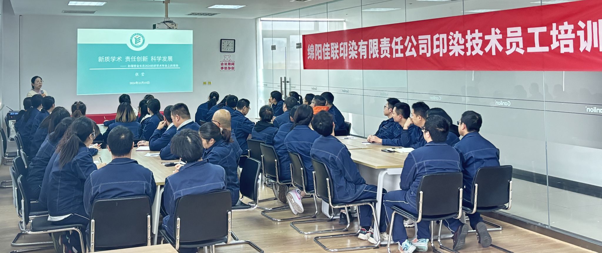 11月15日,pg电子轻工与材料学院常务副院长蒋旎等一行5人赴校企合作企业绵阳佳联印染有限责任公司参加印染技术员工培训启动大会。佳联印染公司人力资源部总经理苏小林、 副总经理石岷山和30余名员工参会,大会由苏小林主持。