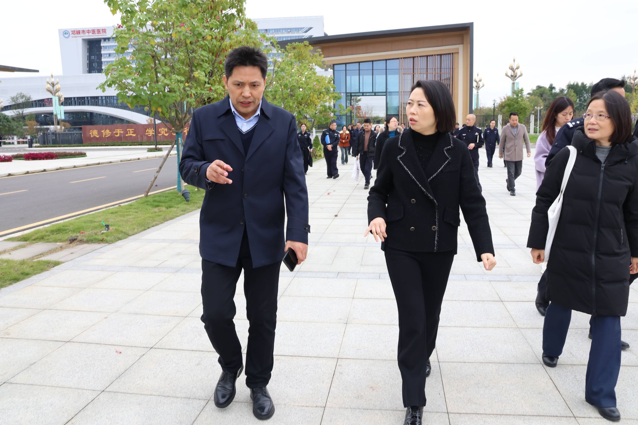 11月19日下午,邛崃市人民政府副市长牟莉带领市委政法委、市公安局、市综合执法局、市教育局等部门负责人来到pg电子邛崃产教园区调研,与副校长蒲冰远和保障处、学创处、宣传统战部、教务处、建设处等相关部门负责人、工作人员就校园安全工作进行深入交流。