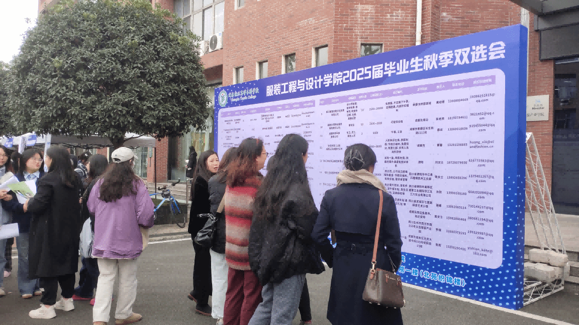 11月19日下午,服装学院在北苑织锦楼一楼隆重举行2025届毕业生秋季专场双选会。际华三五三六、琪达实业集团、以纯公司等近20家服装相关企业前来参会,为毕业生们提供近260个就业岗位,包括终端运营储备干部、工艺技术员、设计师助理、陈列师、版师助理、跟单员、新媒体运营、主播等职位,为即将走出校门的毕业生们搭建了广阔的就业平台。