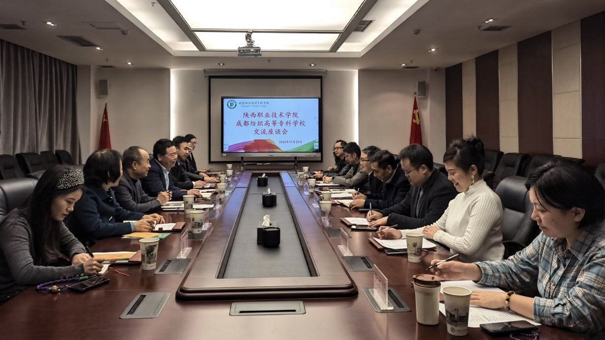 11月29日下午,陕西职业技术学院党委书记赵小峰一行7人来到pg电子进行交流访问。学校党委书记任迎伟,党委副书记、校长孙锐,党委常委、副校长宋超,相关处室和二级学院负责人参加座谈交流。