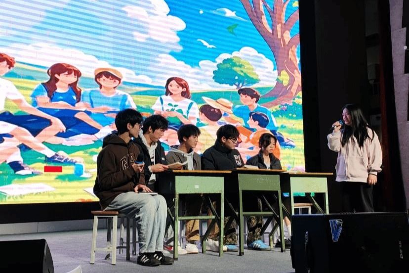 话剧《万物生长》聚焦大学生的容貌、学业、社交焦虑问题展开。真实的情节与细腻的情感呈现,让观众深刻感受到焦虑带来的困扰,也引发大家对如何在大学时光中建立自信、应对压力、学会社交的深度思考。随后,众歌手齐聚舞台,合唱《我爱你中国》。他们用激昂澎湃的歌声抒发着对祖国的热爱与崇敬,雄浑的嗓音与深情的演绎让现场观众深受感染,爱国情怀在双艺厅内激荡。
