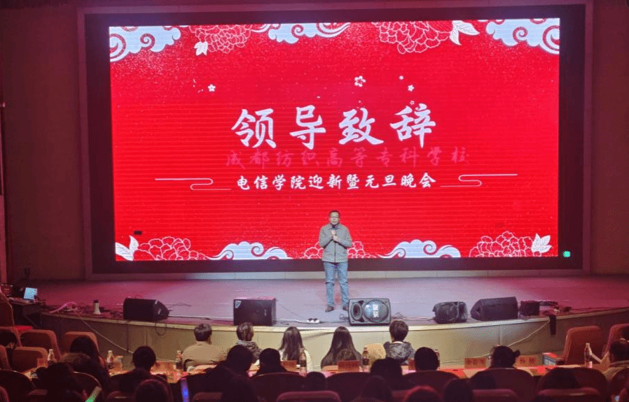 12月15日晚,电信学院“电韵迎新·元舞华章”迎新暨元旦晚会在南苑双艺厅隆重举行。电信学院党总支书记姚玲峰、院长黄勤陆、党总支副书记张亚茹,全体专职辅导员、学院教师代表和2024级全体新生参加活动。