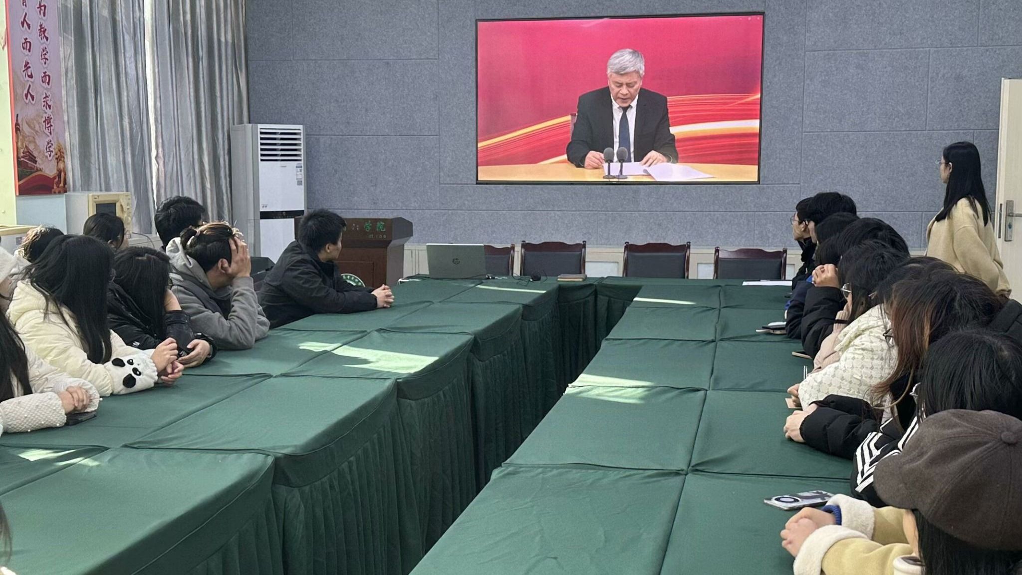 12月24日,轻材学院党总支组织全体师生党员在党建活动室召开党的二十届三中全会精神培训会。培训采用在线集中观看视频资源形式开展,由学院党总支副书记蒋旎主持。