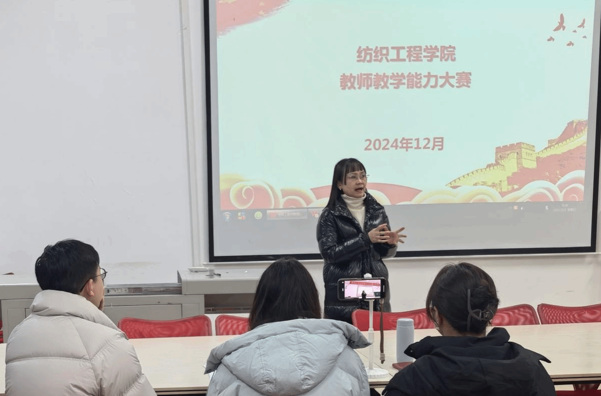 12月24日,纺织工程学院在笃行苑D204会议室举行2024-2025学年教师教学能力大赛。大赛旨在进一步贯彻“以赛促教、以赛促研、以赛促建、以赛促改”理念,通过竞赛激发教师的教学热情,提升教学能力,推动教学内容与方法创新,打造新时代的职教“金课”。