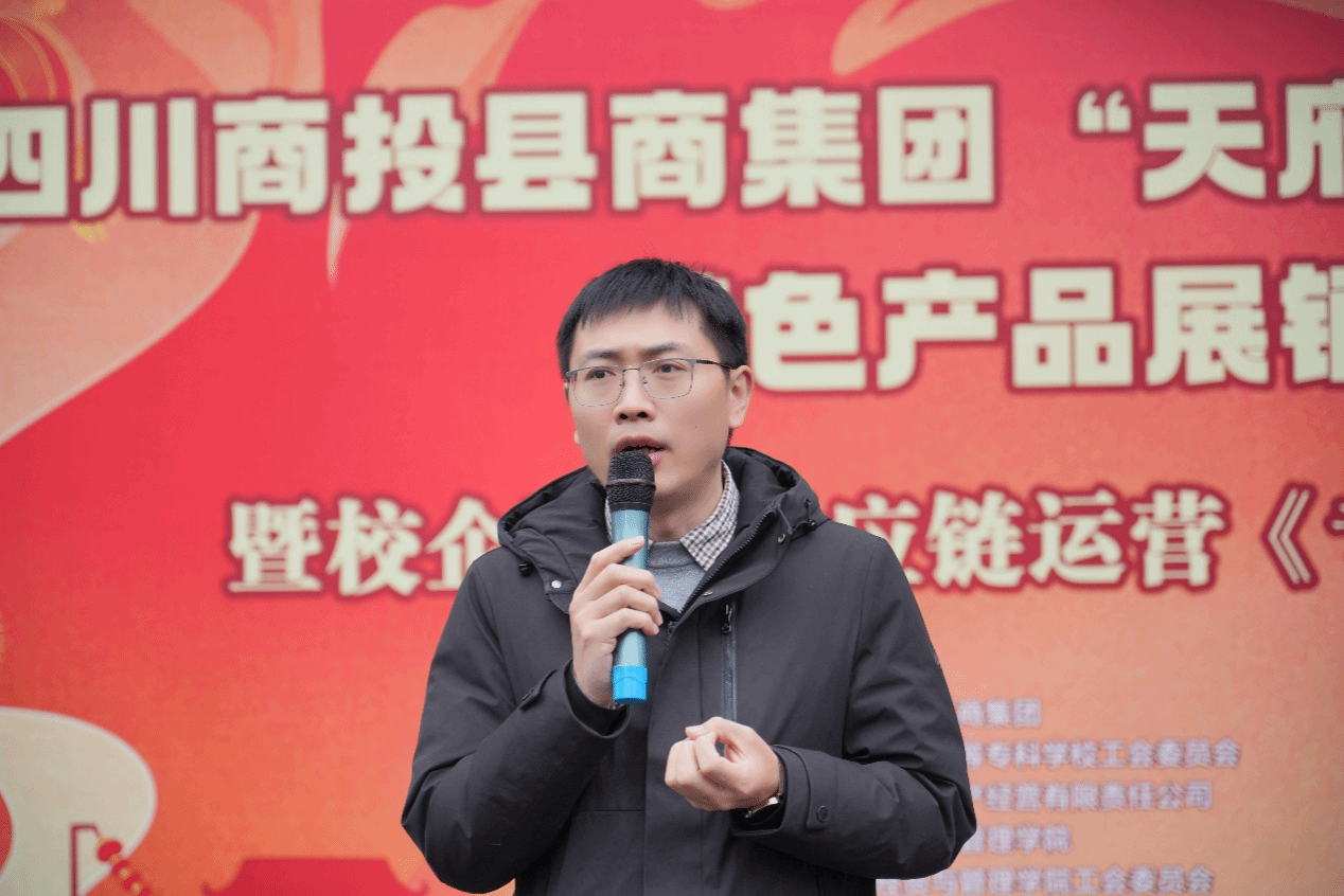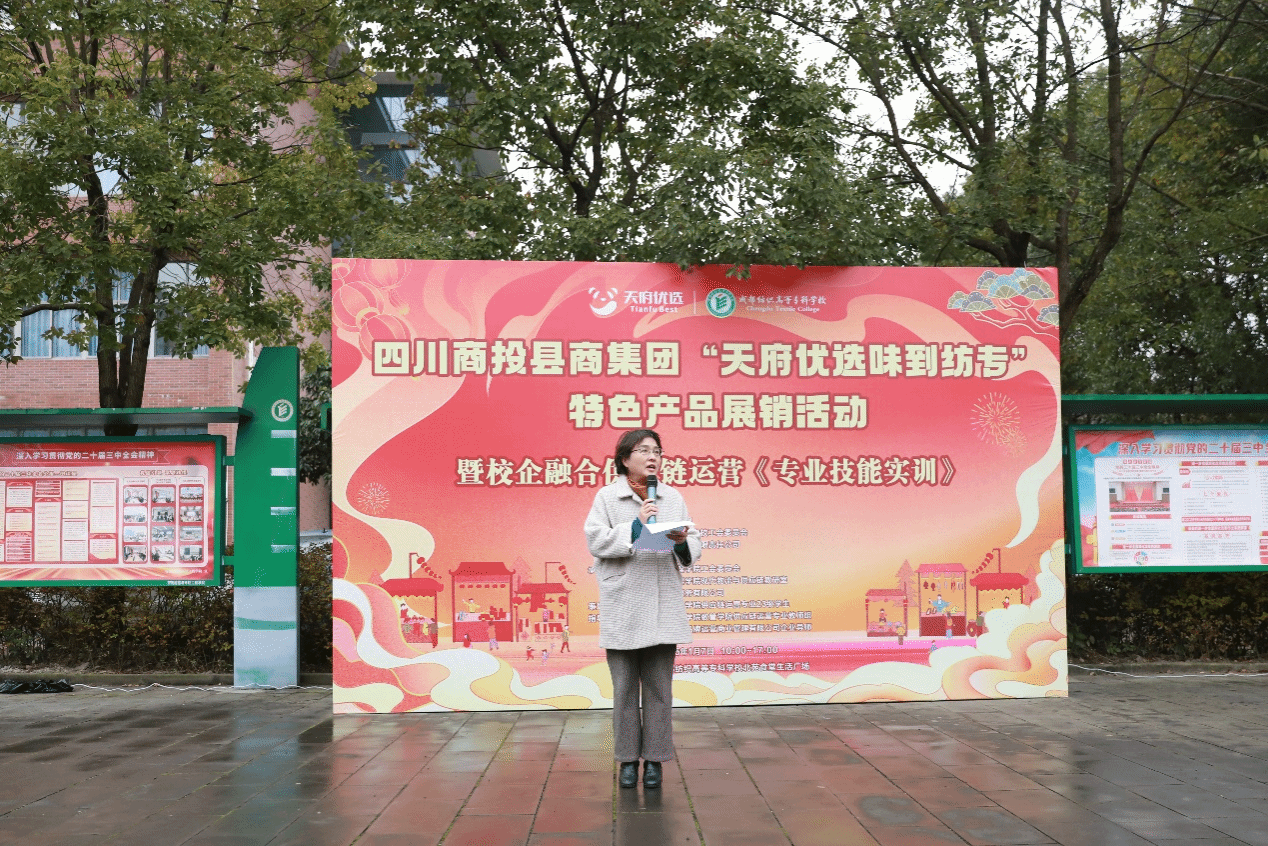 1月7日,四川商投县商集团“天府优选 味到纺专”特色产品展销活动暨校企融合供应链运营《专业技能实训》项目在pg电子举行。学校党委副书记、工会主席周红,四川省商投县域商业集团有限责任公司副总经理党永斌,学校工会专职副主席苏跃光,资产经营有限责任公司直属党支部书记申昕,学校数字经贸与管理学院党总支书记王霖、党总支副书记兼团总支书记何酉宁,现代物流与供应链运营专业教师、供应链运营专业学生及老挝留学生参加了活动。