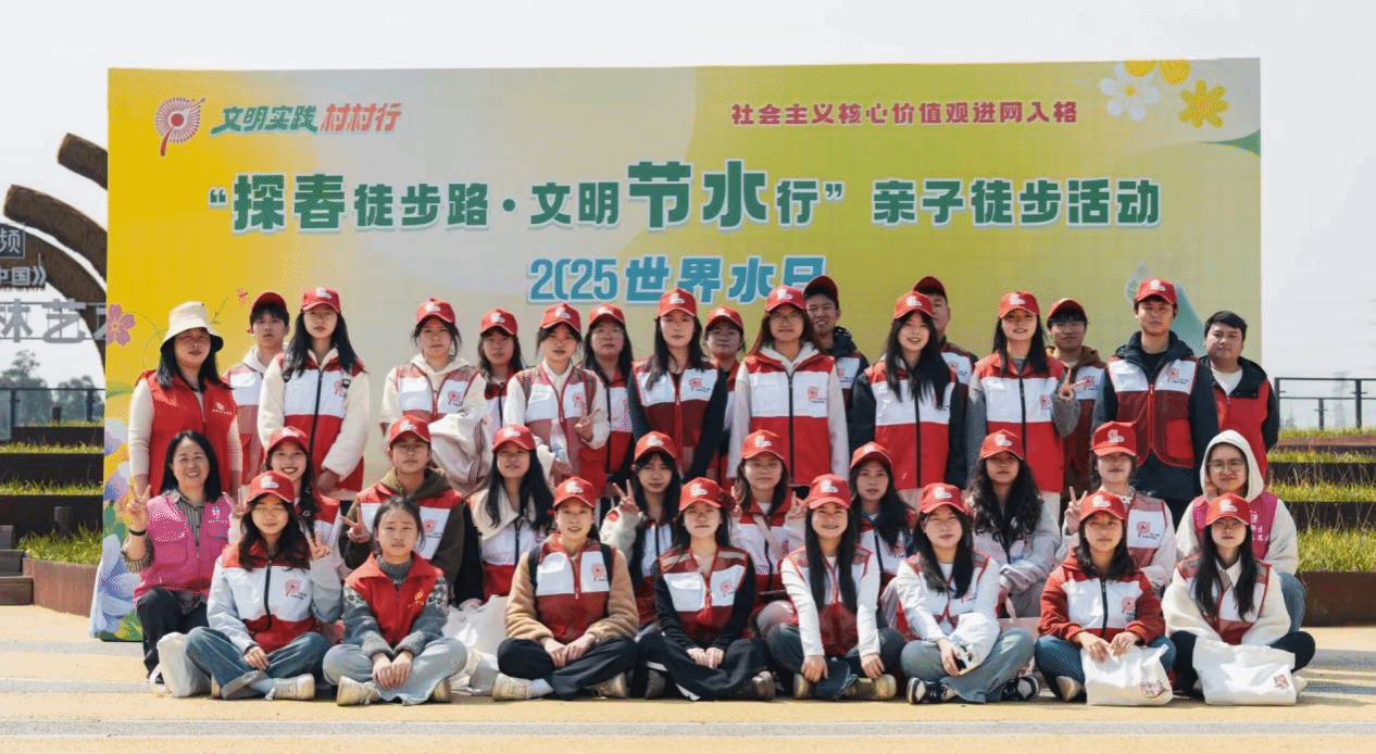 电信学院志愿者助力郫都区德源街道“探春徒步路·文明节水行”亲子徒步活动