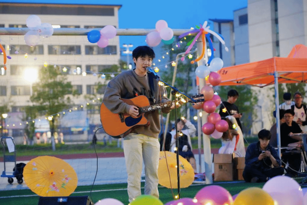 作为邛崃产教园区的露天文艺盛会,首届草坪音乐节节目璀璨绽放,有流行乐队的激情弹唱,有民谣歌手的深情演绎,舞蹈表演更是让本次音乐会迎来高潮。在这星光与春风交织的美好夜晚,师生相聚在绿茵场上,卸下课堂和实训室的严谨,让歌声承载梦想,让节奏激荡热情,在星空下享受音乐的美好,在音乐中感受生命的力量。