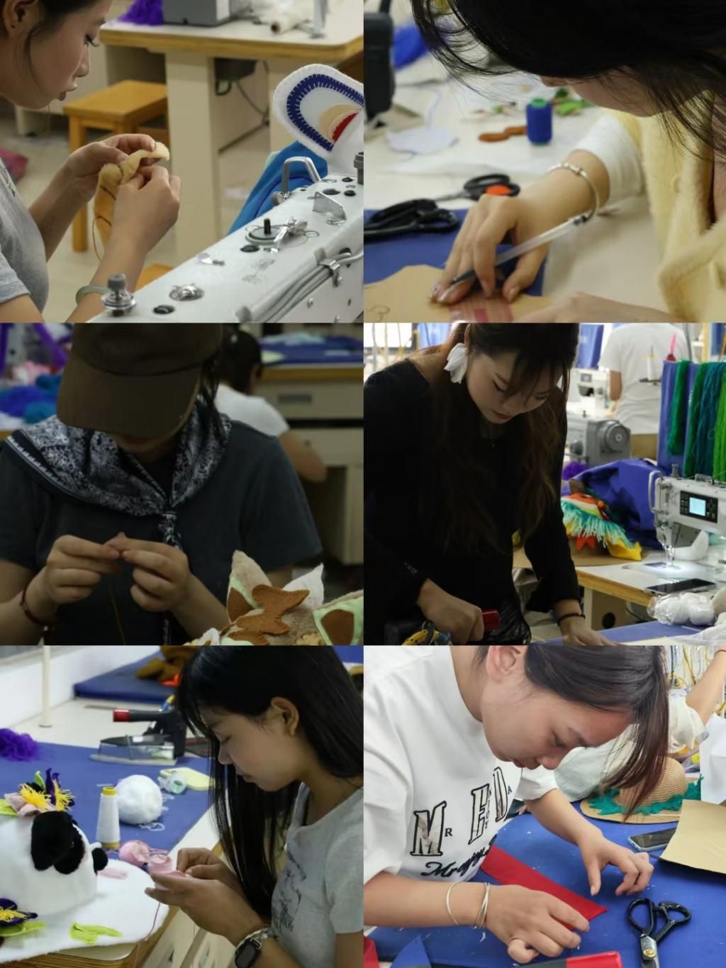在制作分享环节,谌琴、李维两位老师揭秘了花帽子从设计到成型的全过程。她们分享了学生在设计、制版、裁剪、刺绣、装饰等环节中克服的重重困难,以及在反复实践中掌握非遗技艺与手工劳动技巧的成长故事。“一针一线都是对耐心的考验,也是对传统技艺的致敬。”参与制作的欧雪琴同学在分享时感慨道。