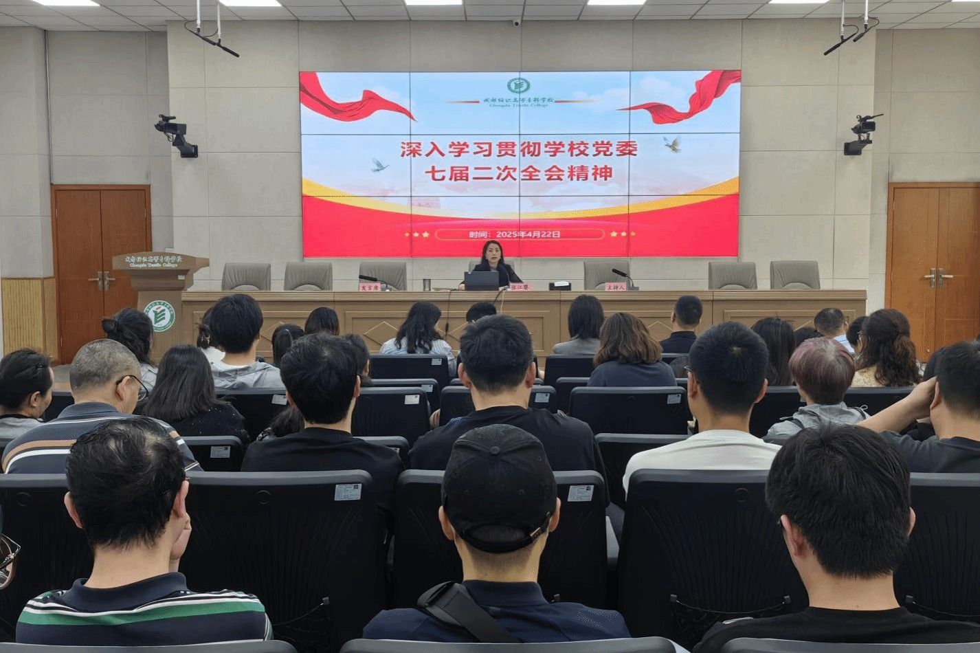4月22日,学校党委常委、纪委书记张江婴在明德楼二楼阶梯教室开展学校党委七届二次全会精神宣讲。会议由数管学院党总支书记王霖主持,学校纪委办公室、数管学院、创艺学院全体教职工参会。
