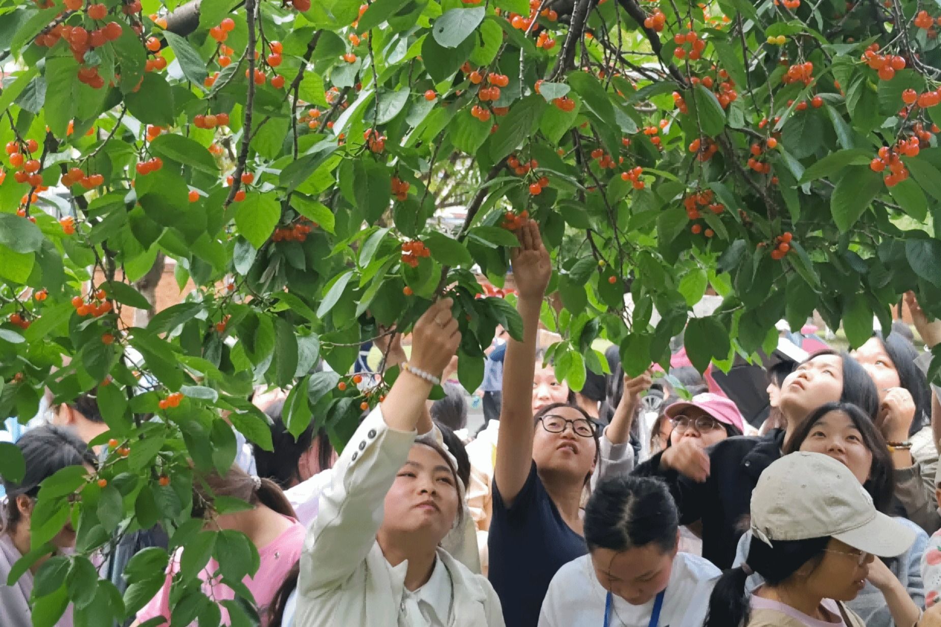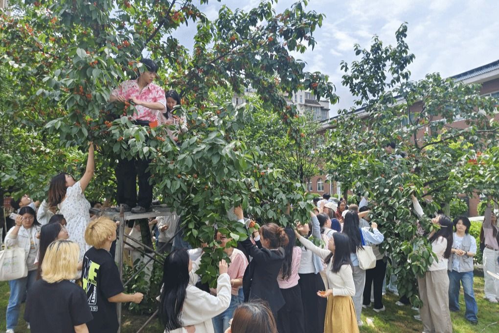 在工作人员的引导下,师生们迫不及待地步入樱桃树林,或三五成群,或独自一人,精心挑选成熟的樱桃。在采摘过程中,师生们一边品尝着甘甜多汁的樱桃,一边交流着采摘的乐趣和收获的喜悦,还学习到了如何正确采摘樱桃,保护树木,确保来年再获丰收。采摘结束后,物业人员将精心挑选的樱桃放置在北苑门口,供未能参与采摘的师生品尝。