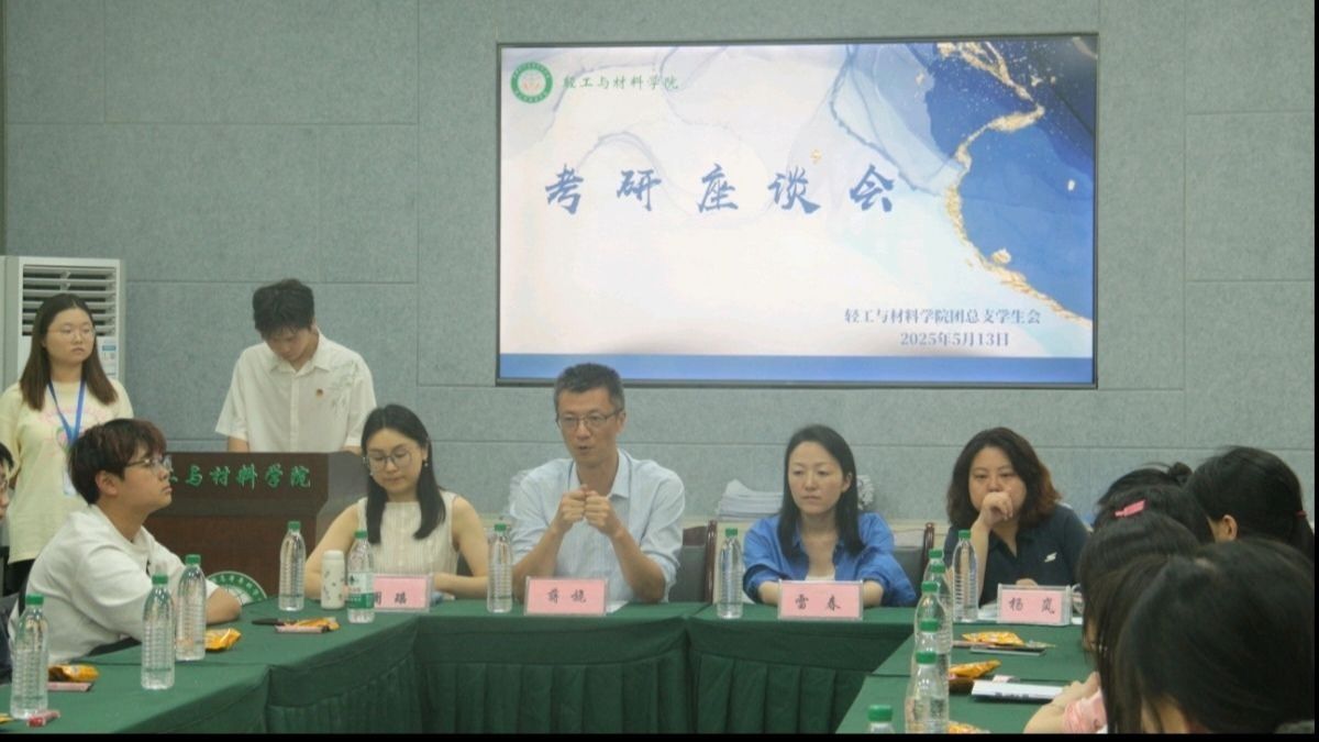 为精准服务学生考研需求,科学指导备考规划,5月13日,轻工与材料学院在会议室召开2025年考研专题指导座谈会,学院常务副院长蒋旎、党总支专职副书记雷春、党政办公室主任杨岚、专职辅导员周瑶及40余名本科班学生参加。会议由高材241班郑智恒同学主持。