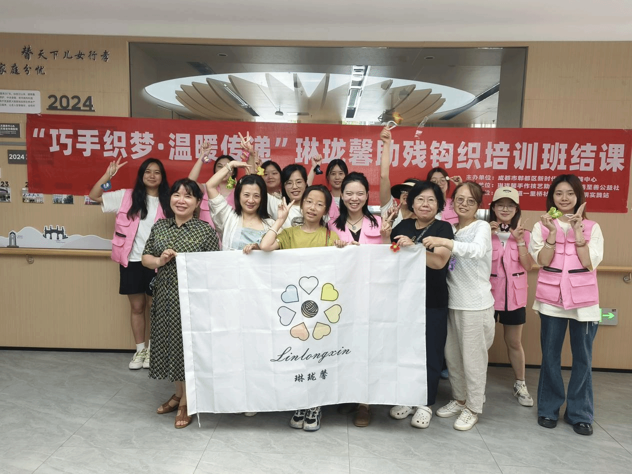 5月18日,纺织学院“琳珑馨”手作技艺助残就业创业团队携手益路至善公益社在郫都区郫筒街道一里桥社区党群服务中心开展的8期钩织培训班圆满结课。