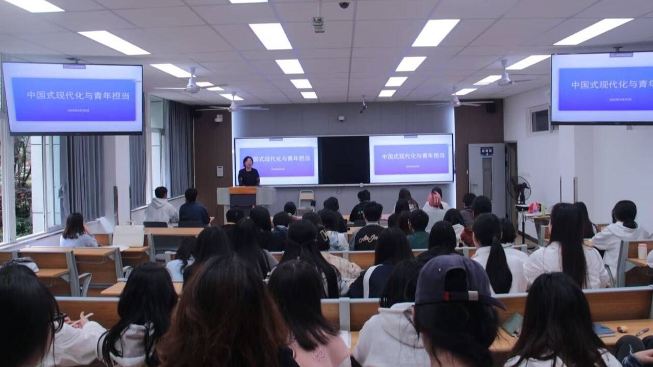 4月29日,马克思主义学院漆晓玲教授以《中国式现代化与青年使命》为题,以中国现代化发展历程为脉络,强调青年在工业革命中的责任。