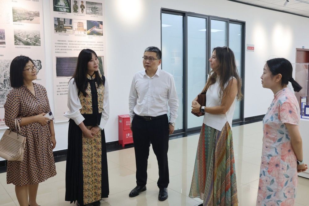 5月21日,德中科技与教育交流协会副会长黄霞、德国杜塞尔多夫应用技术大学客座教授克里斯蒂娜・海瑟(Christine Hesse)一行来校,就织绣技艺非遗数字化保护与传承及国际化合作展开专题调研。学校党委书记任迎伟,副校长刘莉、李明富,朱利容教授、马德坤大师等与客人进行了交流探讨。