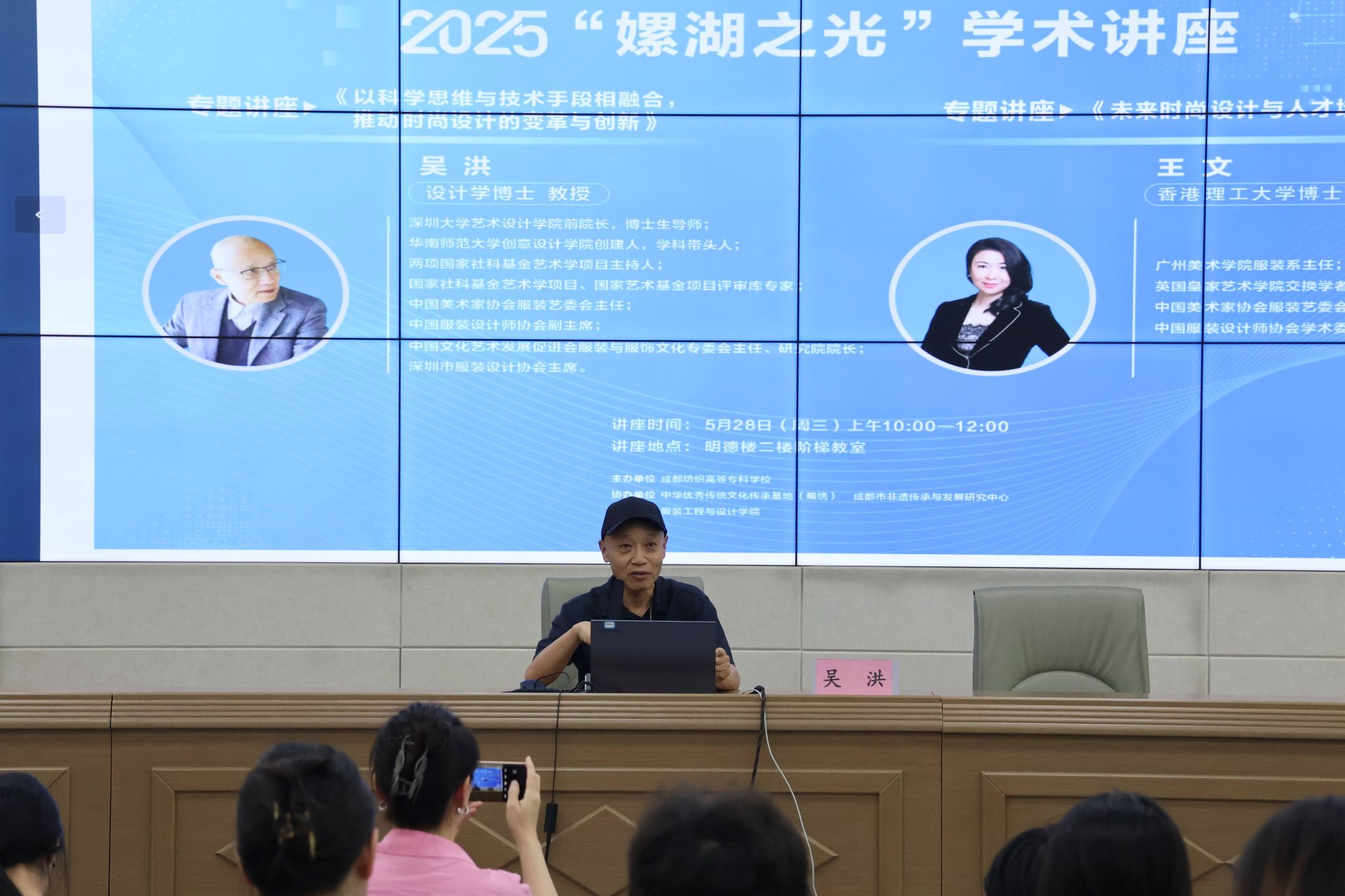 5月28日,由服装工程与设计学院承办的2025“嫘湖之光”学术讲座之“以科学思维与技术手段相融合,推动时尚设计的变革与创新”与“未来时尚设计与人才培养发展路径”两个专题讲座在明德楼二楼阶梯教室举行。深圳大学艺术设计学院前院长吴洪教授、广州美术学院服装系主任王文副教授分别主讲。讲座活动由服装工程与设计学院副院长吴杰主持。