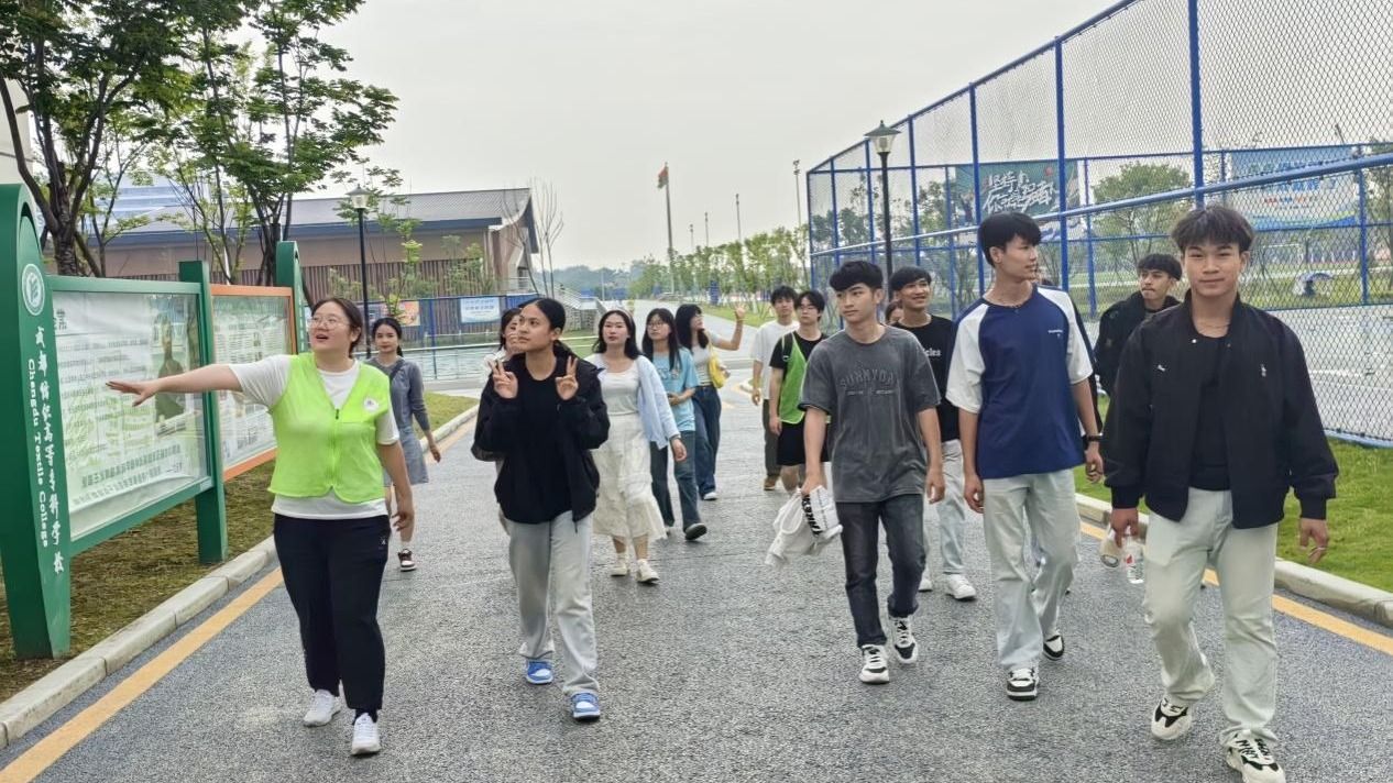 到达邛崃产教园区后,留学生们与建环学院老师一起用餐。随后,在学生志愿者带领下,留学生们参观学校足球场、体育馆、图书室、学院实训室等。在体育馆里,留学生们还与中国学生进行了一场羽毛球友谊赛,欢声笑语回荡在整个场馆。