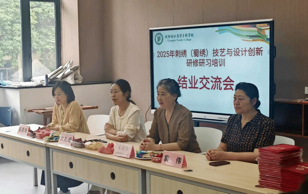 培训总结中,项目负责人朱利容教授高度评价了学员们的学习热情与钻研精神。她强调,蜀绣技艺的传承不仅需要有深厚的传统文化和技艺根基,同样需要有创新创意素养。她殷切希望学子们将所学精湛技艺反哺蜀绣行业,推动其持续发展。服装学院党总支书记太扎姆教授高度赞扬学员们的优异表现和学习成果,并指出,学员们展现出的专业素养与钻研精神令人欣喜。她希望学员们持续精进技艺,将这份对蜀绣的热爱转化为推动行业发展的动力。