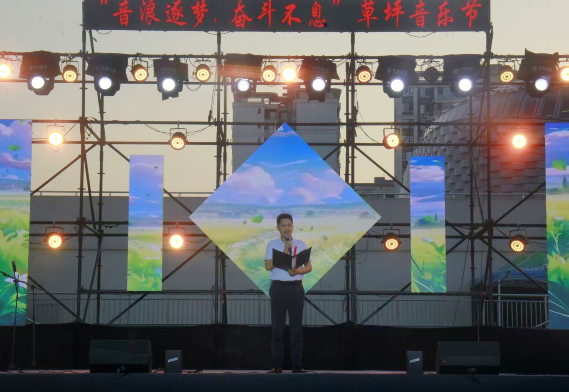 6月10日晚,由校团委主办的“音浪逐梦,奋斗不息”草坪音乐节在邛崃产教园区操场举行。学校党委常委、副校长蒲冰远,团邛崃市委副书记余飘,学校团委书记徐瑾、学创处副处长(主持工作)杨舜如,各学院团总支书记、老师与千余名成纺学子以星空为幕,草坪为席,共赴这场青春洋溢的视听盛宴。