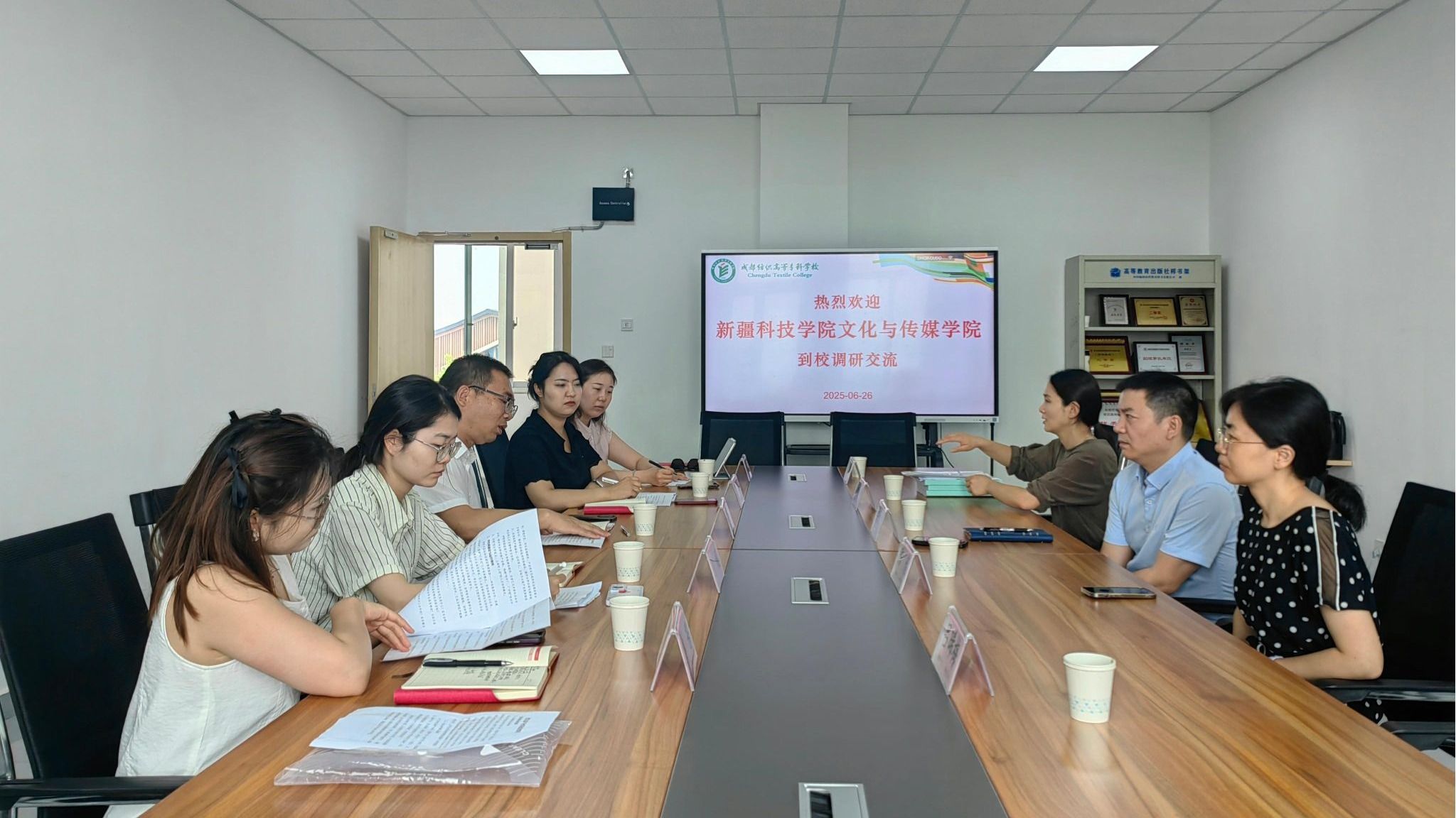 6月26日,新疆科技学院文化与传媒学院副院长喻江平教授带队,旅游教研室主任吐马丽丝・哈尔和专任教师一行5人来pg电子,就文旅产业学院建设等内容开展调研。学校邛崃产教园区管委会副主任郭玲宏,文旅学院副院长梁金柱,旅游教研室教师杨婷婷、吕晞梅、陈倩与喻江平一行进行了交流。