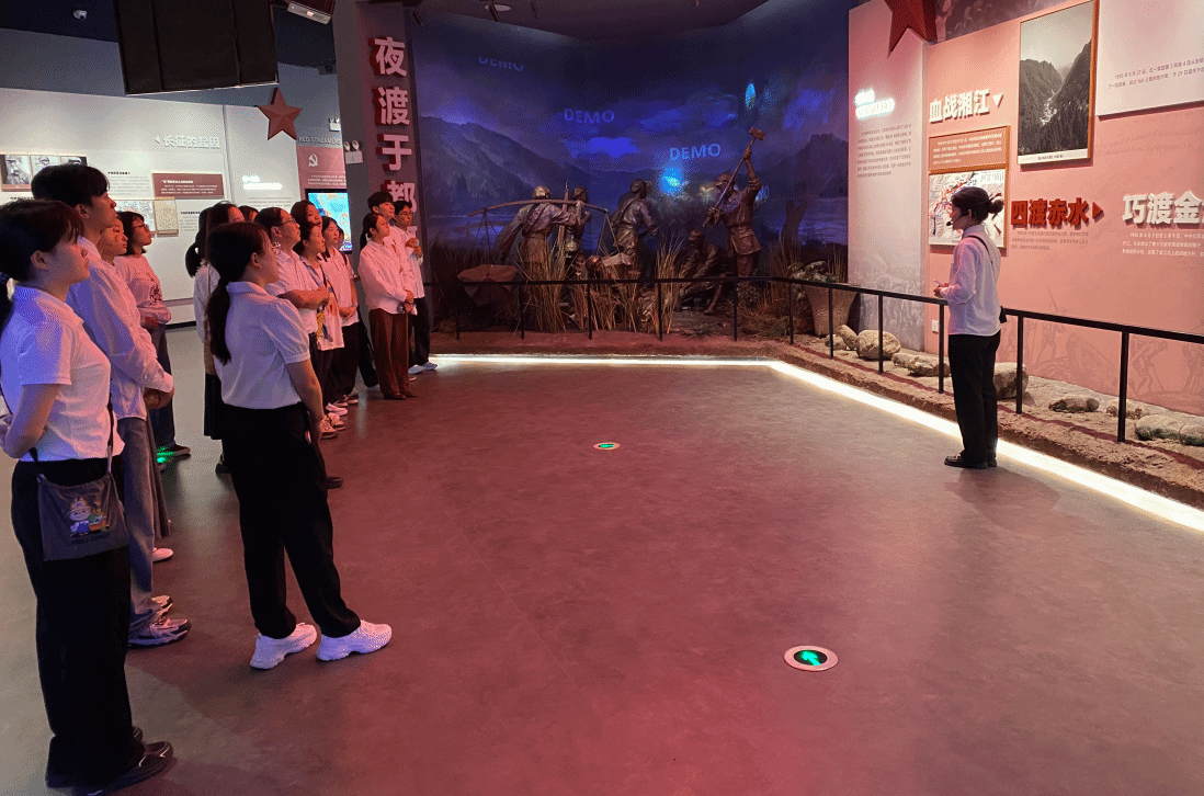 上午,师生党员们怀着崇敬之心踏入红军长征纪念馆。馆内陈列的众多珍贵历史图片、文物,将大家带回到那段艰苦卓绝的长征岁月。在讲解员的详细介绍下,党员们认真聆听每一个感人至深的革命故事,深切体会到红军战士们在长征途中展现出的坚定理想信念和顽强斗争精神。