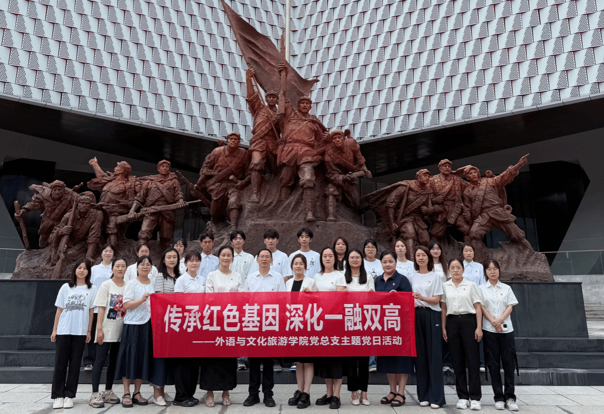 为庆祝中国共产党成立104周年,传承红色基因,深化“一融双高”建设,7月3日,外语与文化旅游学院党总支组织师生党员前往邛崃红军长征纪念馆,开展了一场意义深刻的主题党日活动。