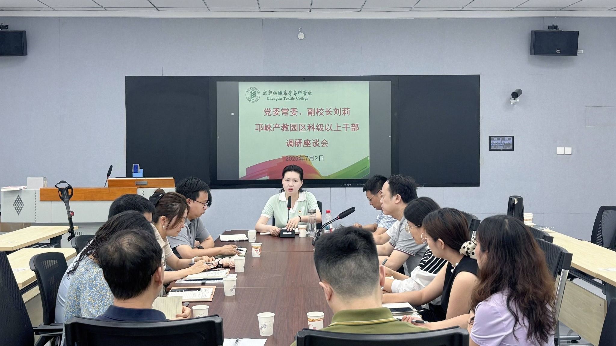 7月2日,学校党委常委、副校长刘莉赴邛崃产教园区组织召开三个学院教师调研座谈会。参加座谈的有计财国资处、资产公司、图信中心,以及建环学院、文旅学院、智造学院的教师代表。
