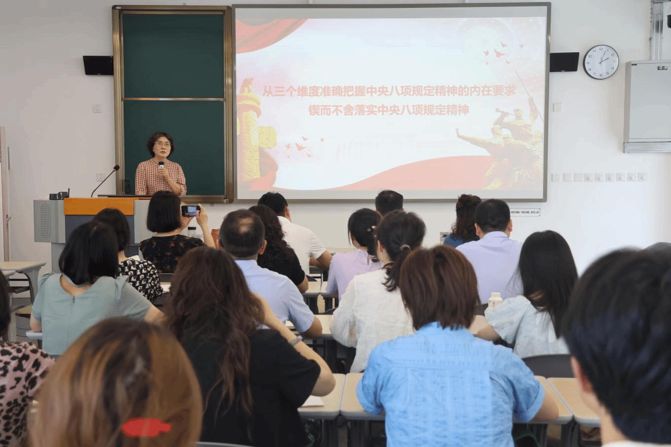 7月4日,学校党委副书记周红在邛崃产教园区为联系学院和分管职能部门的全体党员和教师讲深入贯彻中央八项规定精神专题党课。党课以“从三个维度准确把握中央八项规定精神的内在要求,锲而不舍落实中央八项规定精神”为题,旨在强化党员干部的纪律意识,提升党组织的作风建设水平。