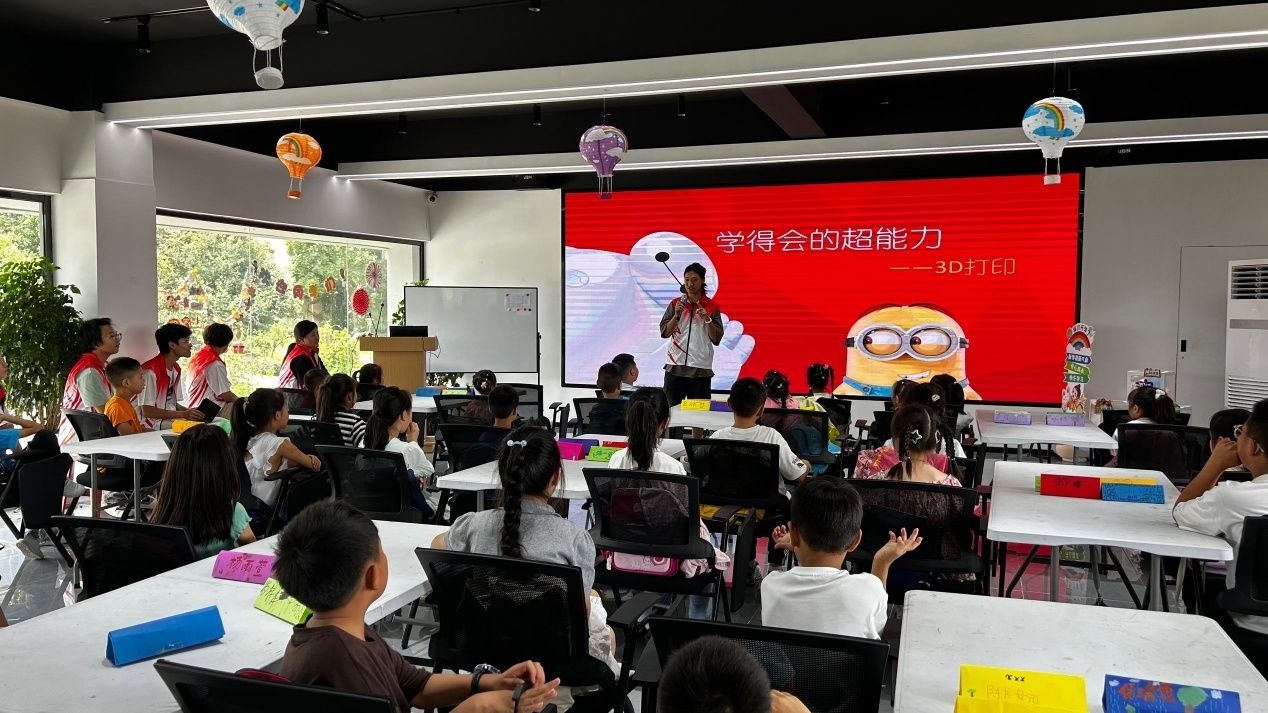 下午,实践活动进入科普教育环节。赵旭、龙曼、韩知春、石岩松四位同学为小朋友们带来了一场别开生面的3D打印知识讲座。他们用通俗易懂的语言,从3D打印的原理、应用领域,到未来发展趋势,为小朋友们打开了一扇通往科技世界的大门。讲解中,志愿者们还展示了一些3D打印的成品,如小巧精致的模型、实用的小工具等,引发了小朋友们的阵阵惊叹。在互动环节,小朋友们踊跃提问,对3D打印技术表现出了浓厚的兴趣。志愿者们耐心地进行解答,并鼓励小朋友们大胆想象,未来用3D打印技术创造出更多新奇的事物。