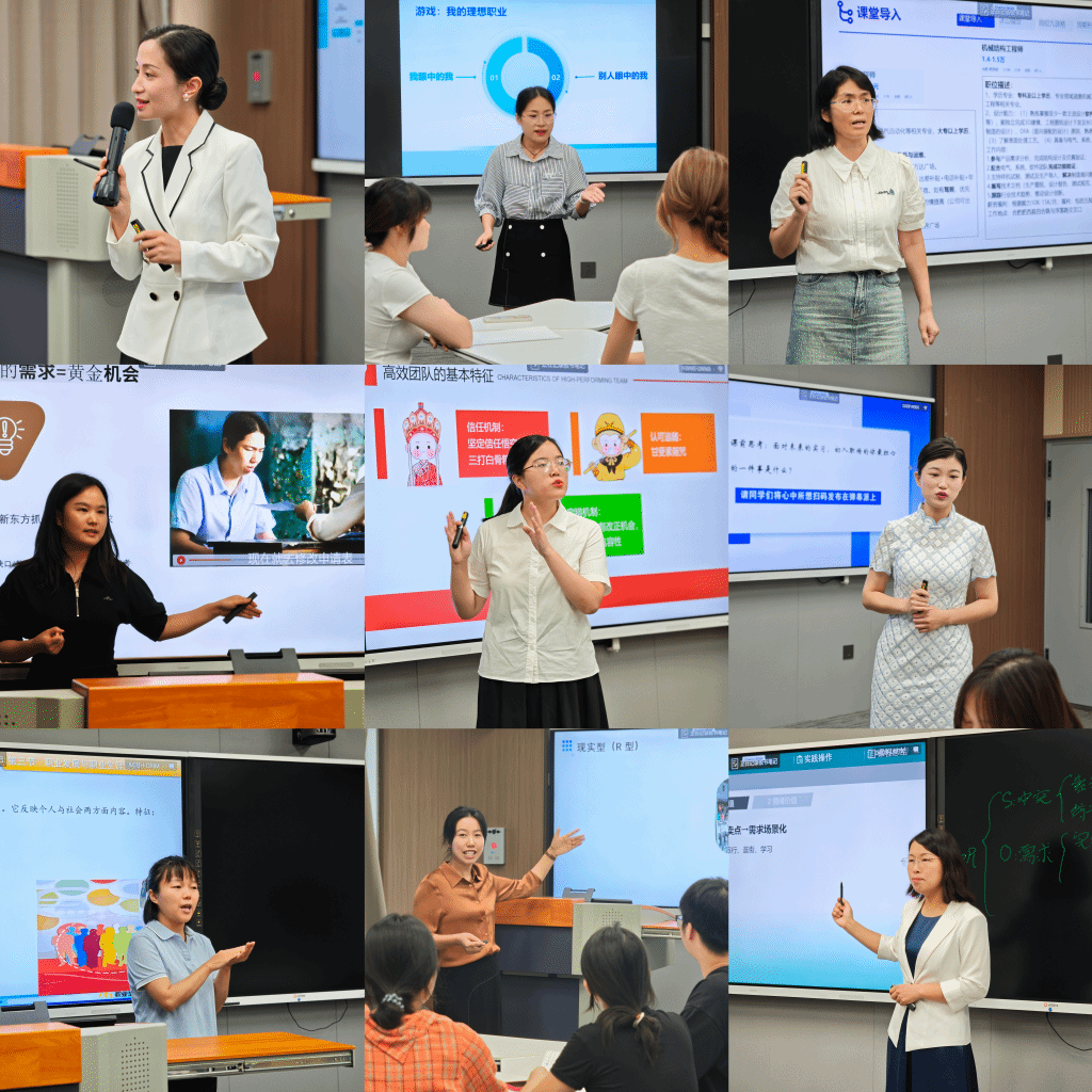 决赛现场气氛热烈而紧张,参赛教师们围绕职业生涯规划、就业能力提升、求职面试技巧、求职礼仪、创业基础、创业实践等核心模块,进行了精彩纷呈的现场教学展示。课程内容紧密对接产业发展需求以及新业态、新职业发展趋势,体现了鲜明的行业特色和时代特征。教师们大量引入校友成功案例、行业企业真实招聘情境、区域产业发展动态;灵活运用情景模拟、AI面试模拟、在线测评工具等多种教学手段,提升了学生的参与度和体验感;课程设计注重实操性,着力提升学生的核心能力;将职业精神、工匠精神、诚信教育、社会责任等思政元素有机融入课程。