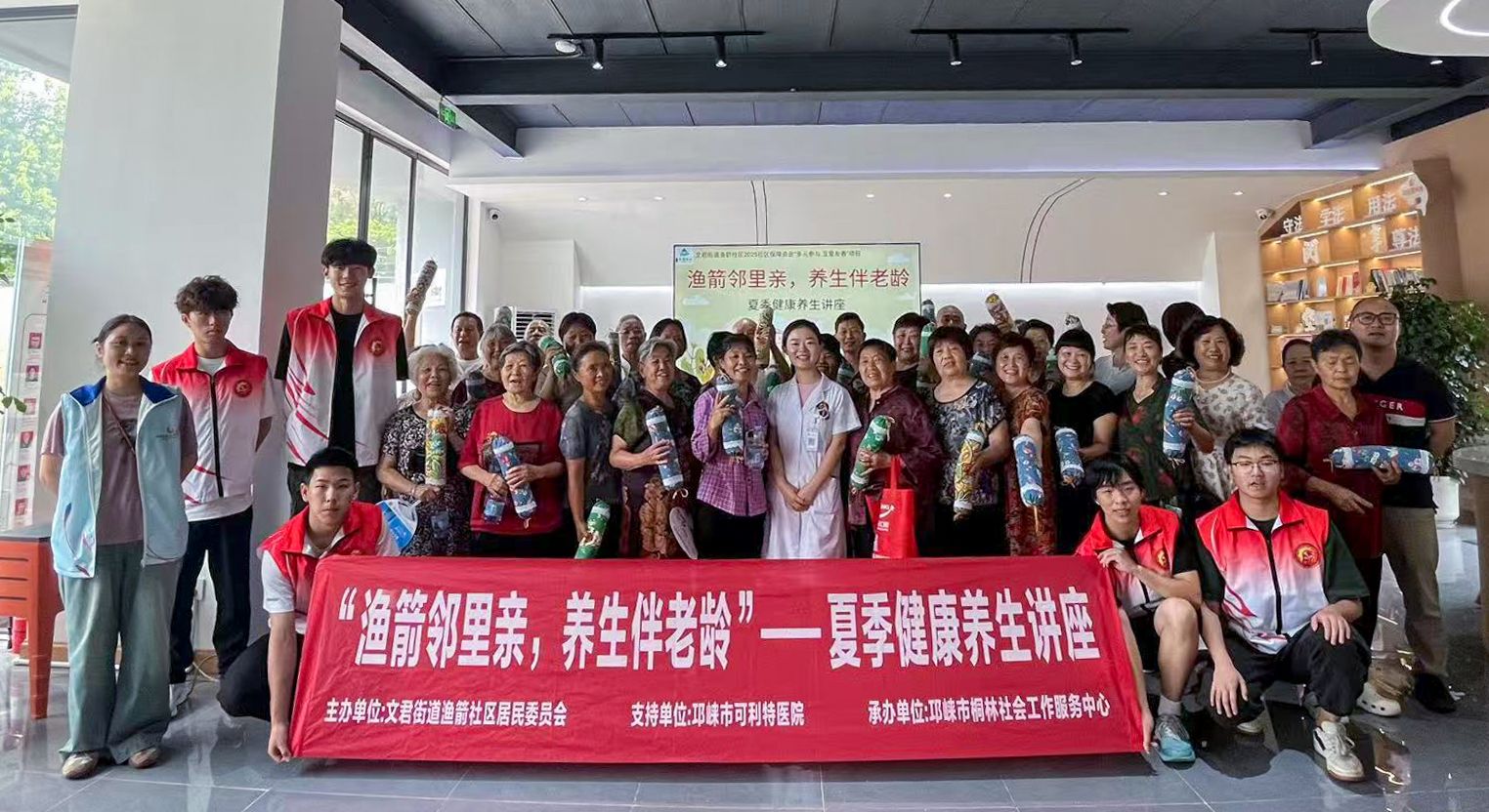 与孩子们的热闹不同,社区另一间活动室里,一场“老年人夏季健康养生讲座”也在温馨进行。“三下乡”志愿者团队协助社区卫生服务中心医生,为老人们讲解防暑降温、饮食调理和适度运动的小技巧。“夏天出汗多,要及时补充淡盐水,别喝太多冰水!”医生结合案例提醒;“中午12点到下午3点紫外线最强,尽量别出门,要是出门记得戴宽檐帽!”志愿者则为老人发放“夏日健康手册”,里面印着“绿豆汤做法”“防蚊小妙招”等实用内容。