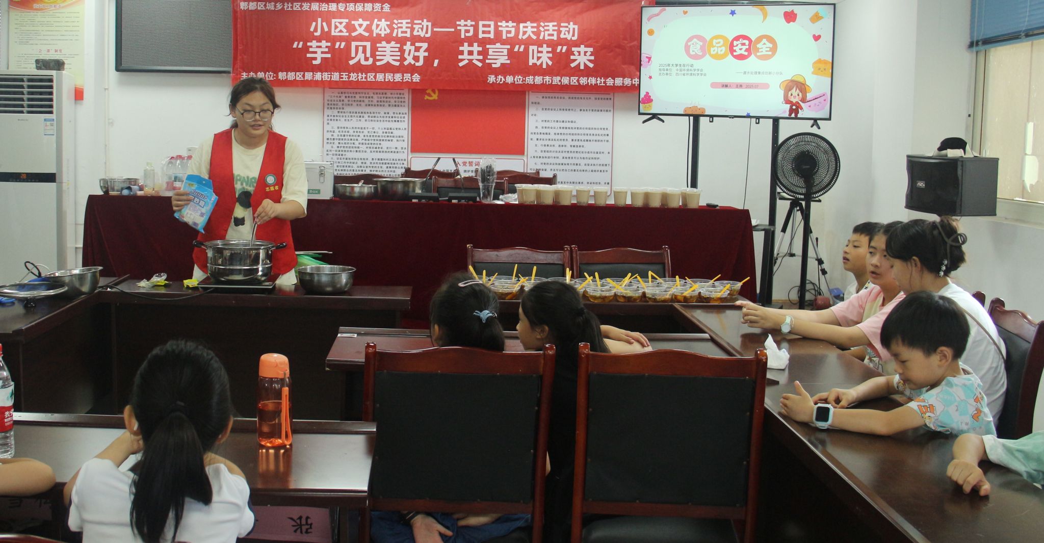 7月18日,在玉龙社区的“食光志愿行·美味传人间”美食制作活动现场,团队成员王燕同学为参与者详细科普食品安全相关知识,李德香详细演示冰粉和芋圆奶茶的制作要点,阐释食品化学原理,如食用石灰水遇冰粉籽原液,钙离子瞬间链接果胶分子形成网状凝胶等,激发了大家的参与热情。实操环节中,孩子们兴致高昂,在志愿者指导下称量原料、观察反应,严格按照步骤制作。制作完成后,小朋友们纷纷展示自己的作品,分享制作心得,在交流中相互学习技巧,欢声笑语充斥着整个社区。