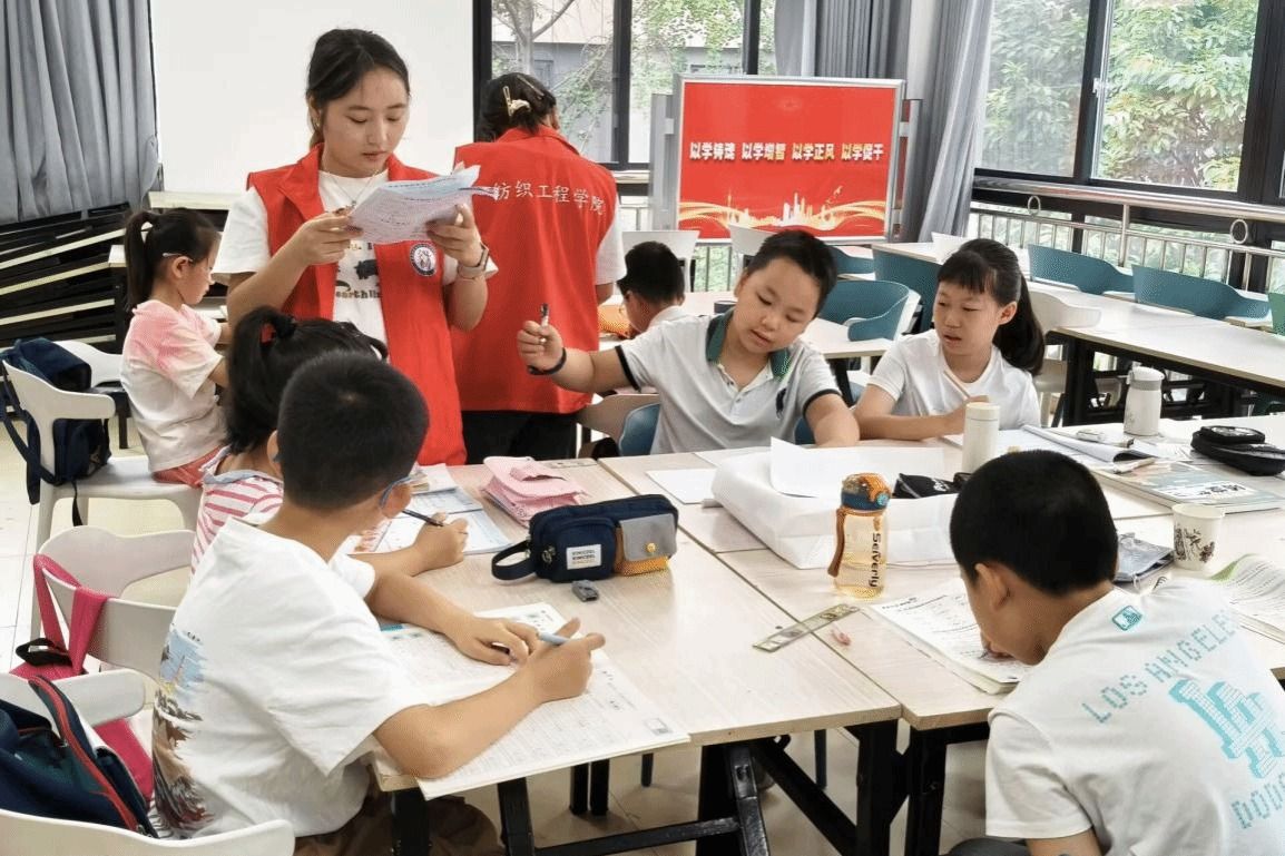 志愿者们耐心细致辅导孩子们写作业,从解题方法的拆解,到写作思路的引导,再到暑期作业的进度梳理,整个辅导过程既有序又温馨。小朋友做题遇难题时,志愿者引导他们“像红军过草地找出路,咱们一起读题、画图解决。”分心时提醒“学红军专注打仗那样,专心才能攻克难关。”以长征关卡类比学习难题,引导小朋友像先辈那样直面挑战,培养“不放弃”的成长信念。