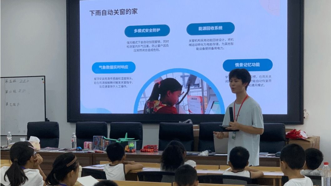 廖心语同学聚焦“智能灌溉体系”,利用视频生动形象地展示了土壤湿度传感器如何感知环境、控制器如何做出决策、水泵如何精准执行指令。“传感器初识”课程将抽象概念具象化,李登凯同学运用视频,将温度、光线、声音等多种传感器直观展示出来,孩子们通过视频+理论的上课模式,感受这些“电子感官”如何灵敏地捕捉环境信息,初步理解了物联网时代万物互联的感知基础。