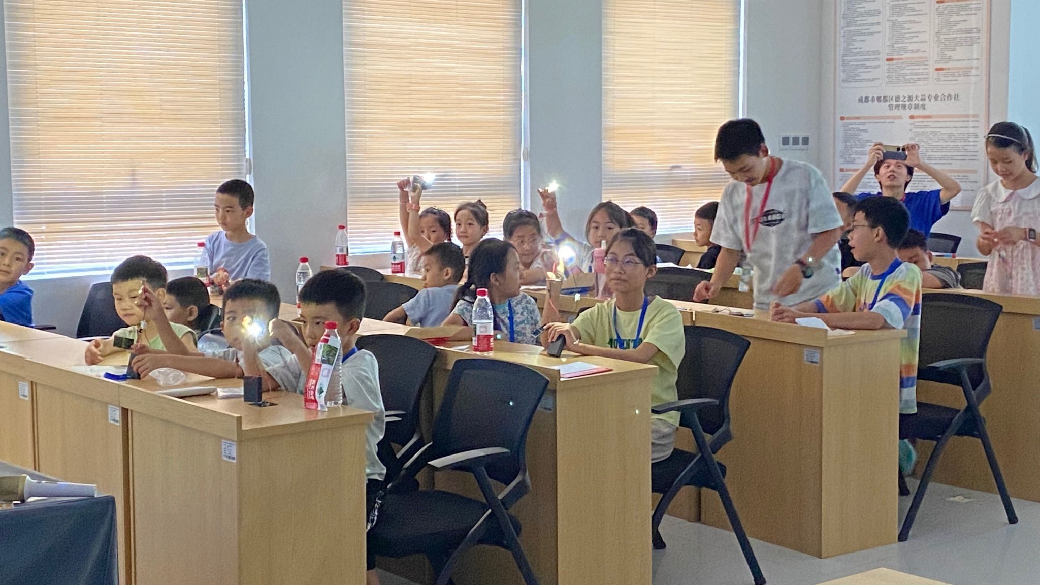 自7月18日起,电气信息工程学院暑期“三下乡”社会实践团队便扎根成都市郫都区德源街道东林村,开启了深入乡村的社会实践之旅。来自学院自动化和智能控制协会的志愿者们为当地孩子们精心打造了一场融知识性、趣味性与实践性于一体的科技启蒙盛宴。该系列课程以“启迪思维、点燃兴趣”为核心,将前沿的电子信息与自动化知识转化为生动体验,为乡村儿童打开了探索科技世界的大门。