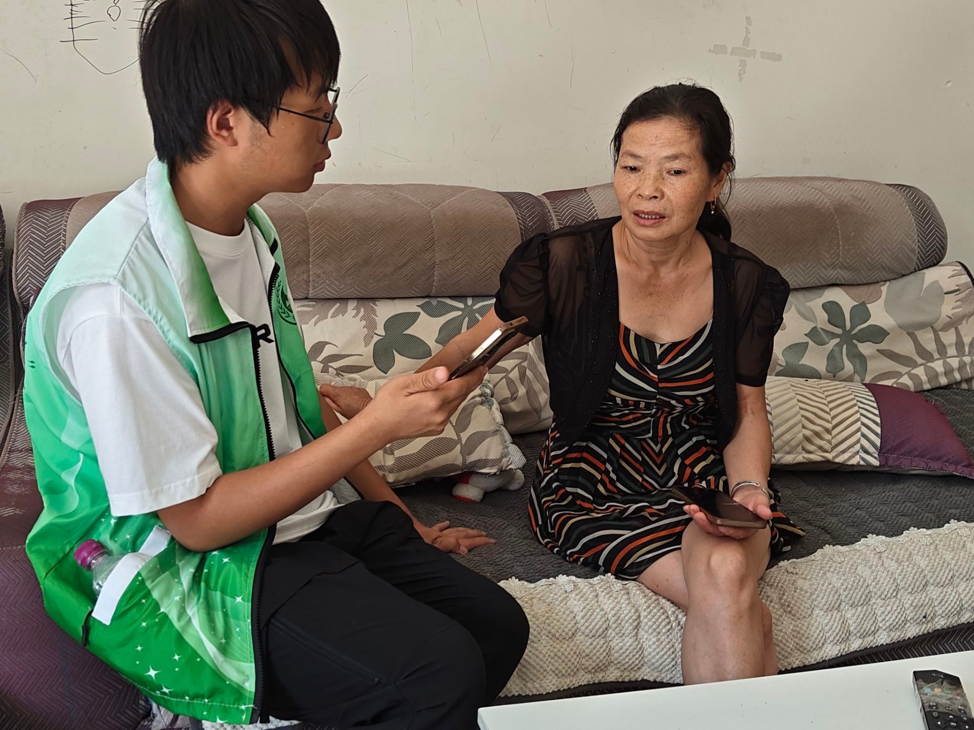 由两学院7名志愿者组成的调研团队深入东林村,在村委会负责人陪同下,走访多户村民家庭。针对电路老化、房屋老化对环境释放有毒物质与废弃物污染方面的影响,生活用水排污造成的水质问题,以及垃圾分类和垃圾站的垃圾处理等问题展开深度调研。“过去岸边垃圾成堆,夏季有异味,淤泥多且易积水。”村民王大姐的反馈被详细记录。大家也积极交流探讨后续改善方向。
