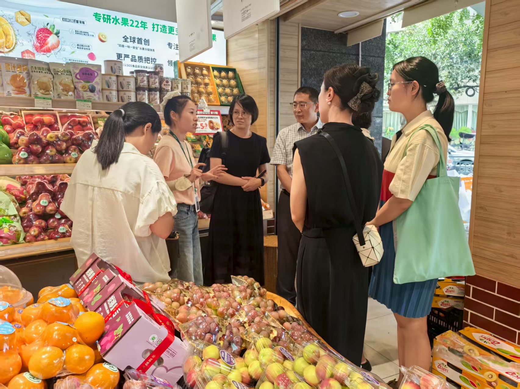 8月13日,数管学院党总支书记王霖、副院长(主持工作)何凌、连锁经营与管理专业负责人陈泓樾,教师陈雨生、邓小翠、杨蕊绮一行赴百果园(成都证大正府店)调研交流,与百果园成都区总经理卓九兰、人事经理王云月及门店管理团队商谈校企合作事宜。