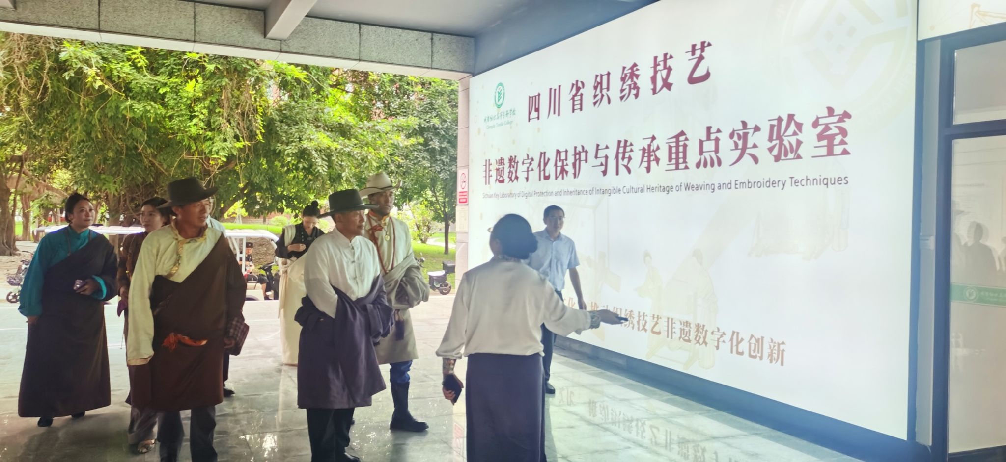 交流会前,王霖陪同洛穷一行参观了学校校史馆和织绣技艺非遗数字化保护与传承四川省文化和旅游厅重点实验室。