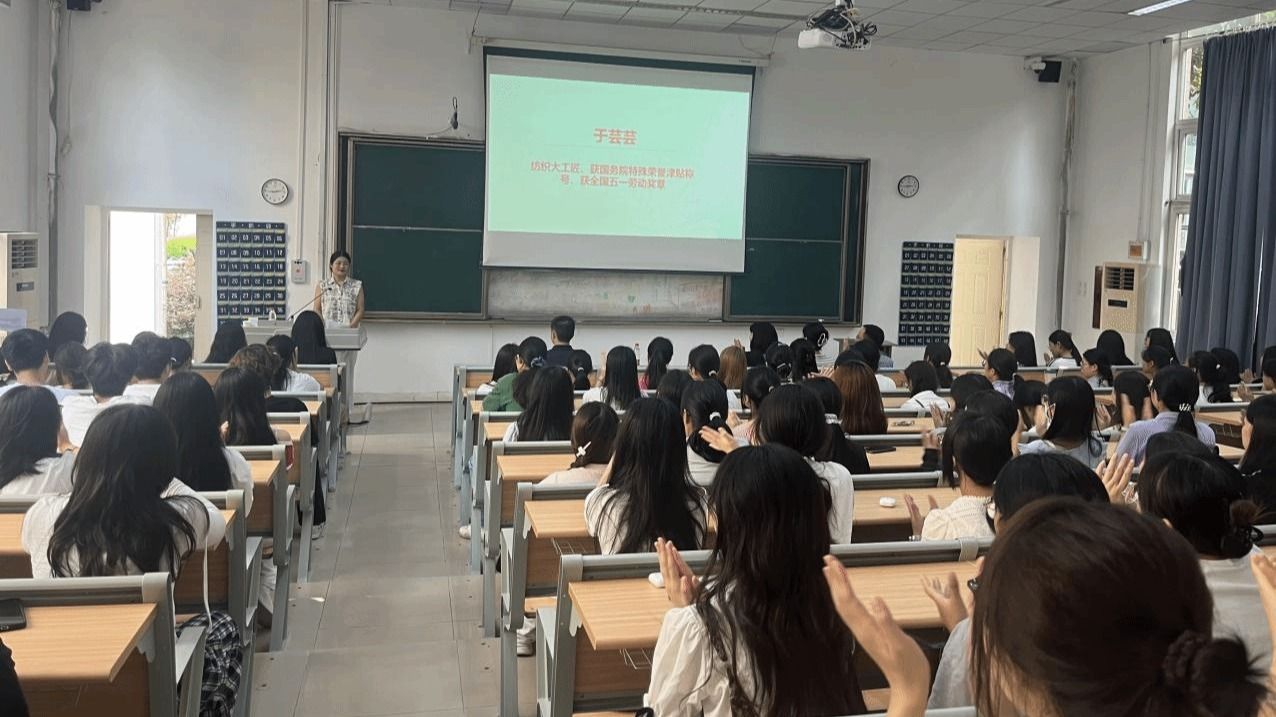 分享尾声,于芸芸以“人生如莲,三度修炼”寄语新生:“大学三年是积累‘莲之根本’的关键时期,现在的每一次课堂学习、每一次实践操作,都是在为未来的‘绽放’积蓄力量。希望你们能热爱纺织、坚守初心,未来成为有知识、有技能、有担当的新时代纺织人。”