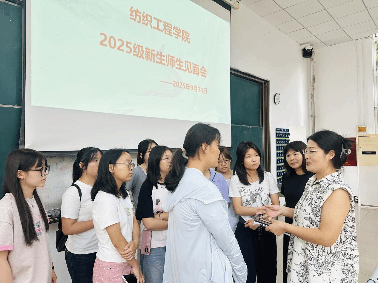 此次见面会是纺织学院2025级新生入学教育“织梦启航”主题活动的重要环节。继专业介绍、新生适应教育、学院概况解读之后,“国务院特殊津贴专家”“全国五一劳动奖章”“全国纺织工业劳动模范”“中国纺织大工匠”等荣誉获得者于芸芸带着从一线车间积累的实践经验与行业感悟,为新生打开了认识现代纺织行业的“新窗口”。