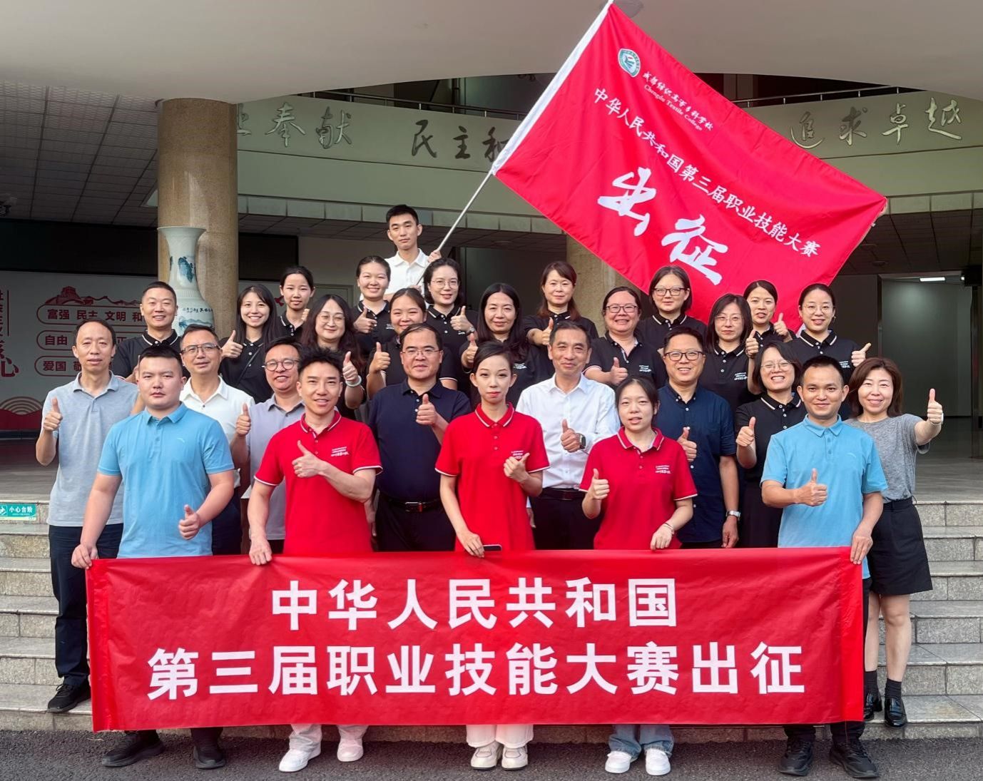 学校为“中华人民共和国第三届职业技能大赛”参赛选手壮行